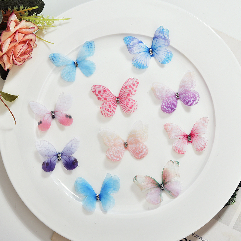 Cross-border for tulle butterfly plus drill double yarn butterfly diy decoration materials INS explosions butterfly