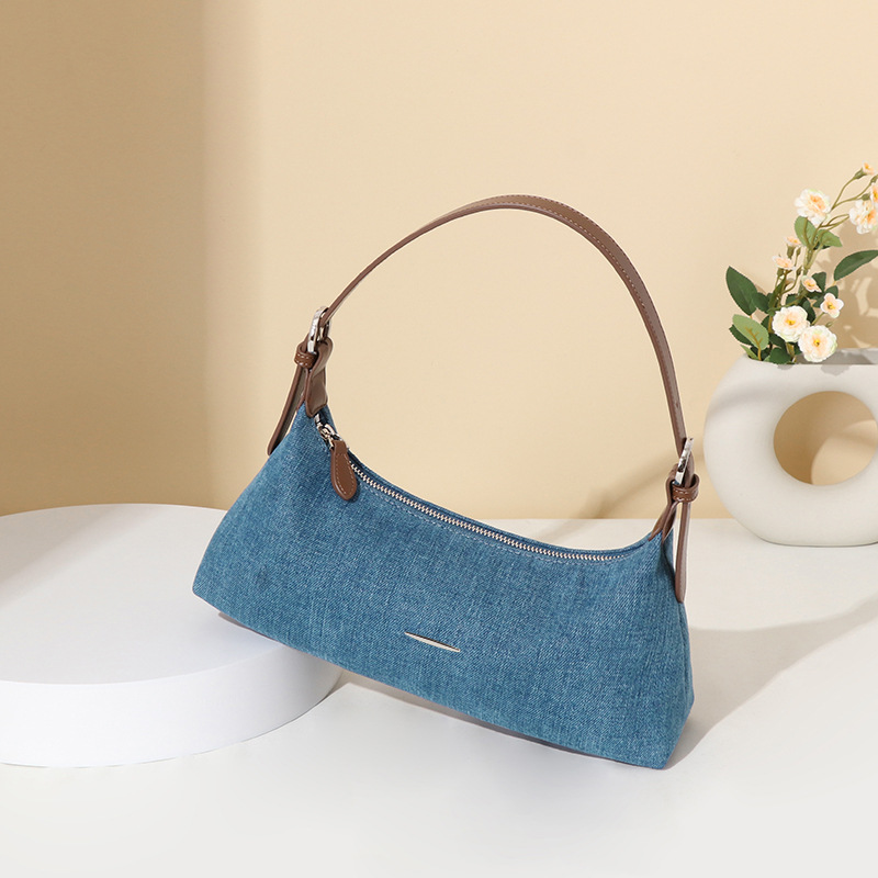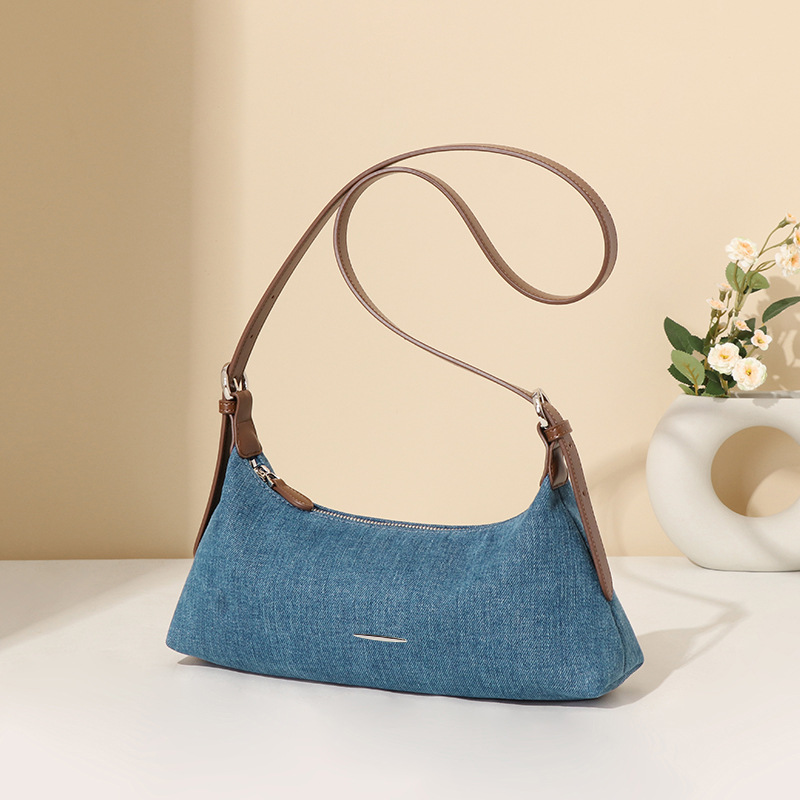 | nameOriginal | Cross-border foreign single European and American fashion retro western retro style color contrast stitching Denim underarm bag shoulder bag dumpling bag |