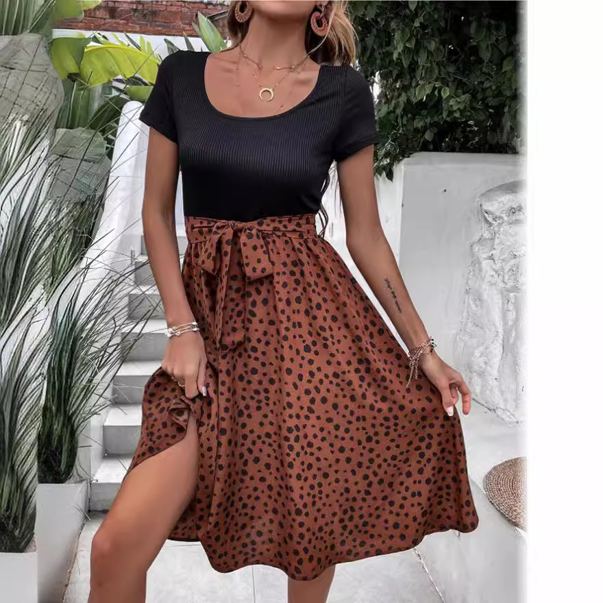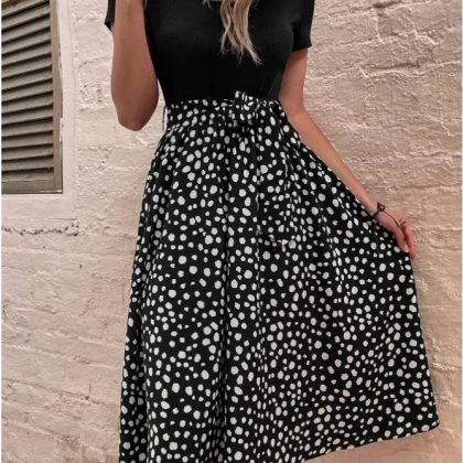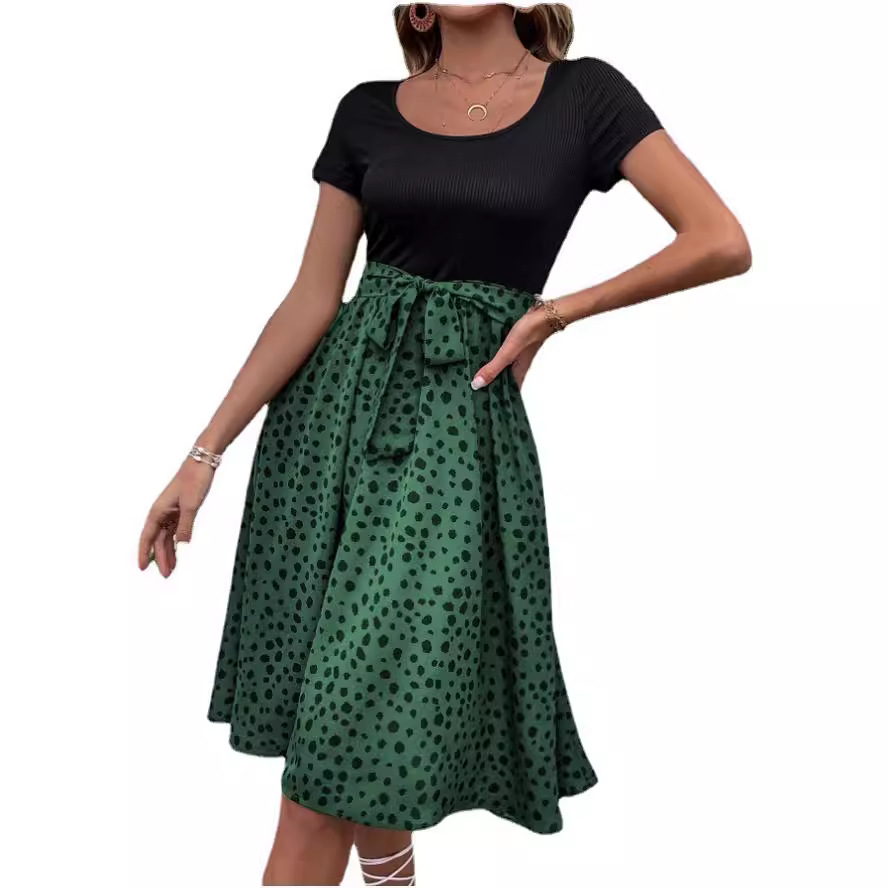 | nameOriginal | Cross-border foreign trade 2023 AliExpress Amazon independent station summer women's stitching round neck polka dot short sleeve dress |