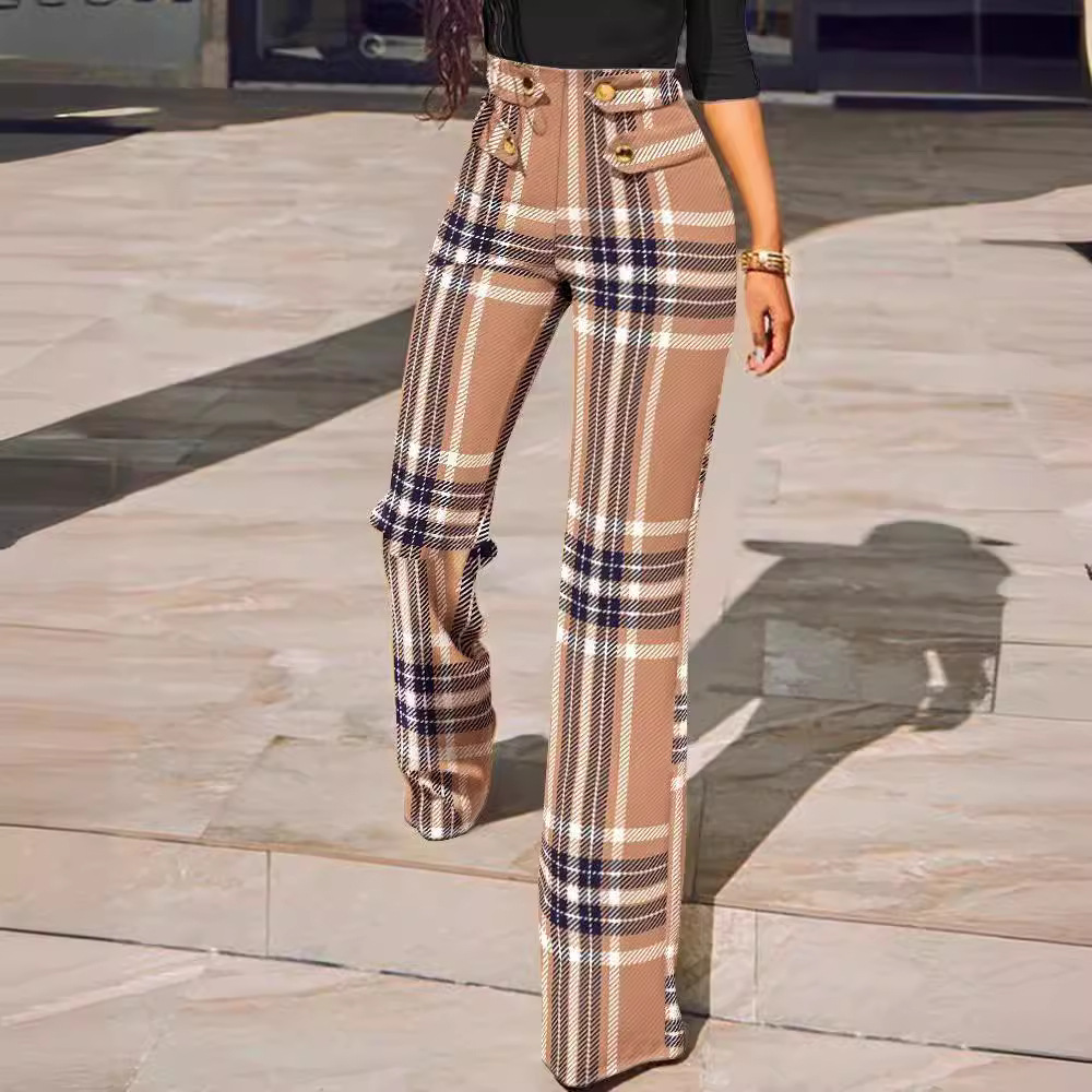 | nameOriginal | Cross-border Foreign Trade 2023 AliExpress Europe and America Spring Mid-waist Plaid Tight Fashion Split Micro-La Casual Pants |