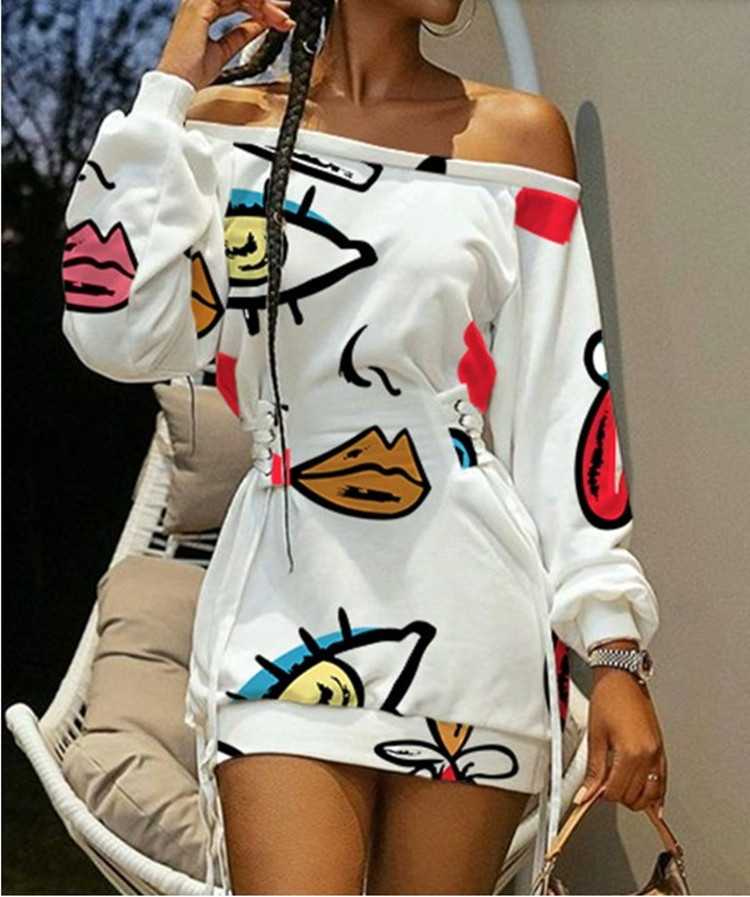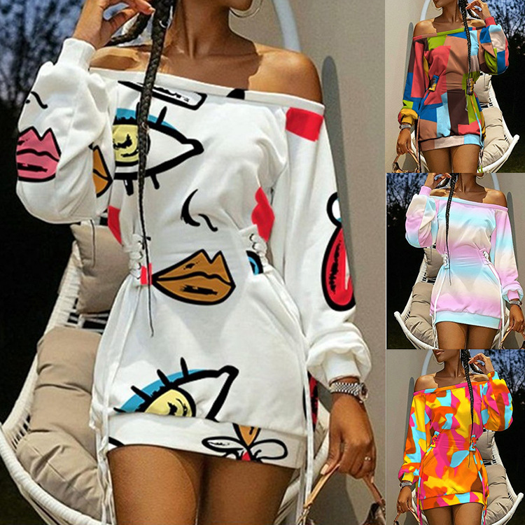 Cross-border foreign trade 2023 spring and summer new Amazon wish European and American round neck tie-dye printed long sleeve loose dress