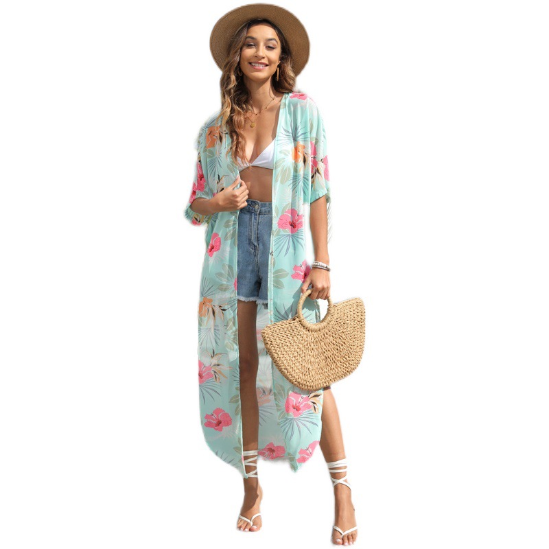 | nameOriginal | Cross-border foreign trade 2023 Summer new Amazon large size sunscreen beach holiday dress chiffon cardigan blouse women |