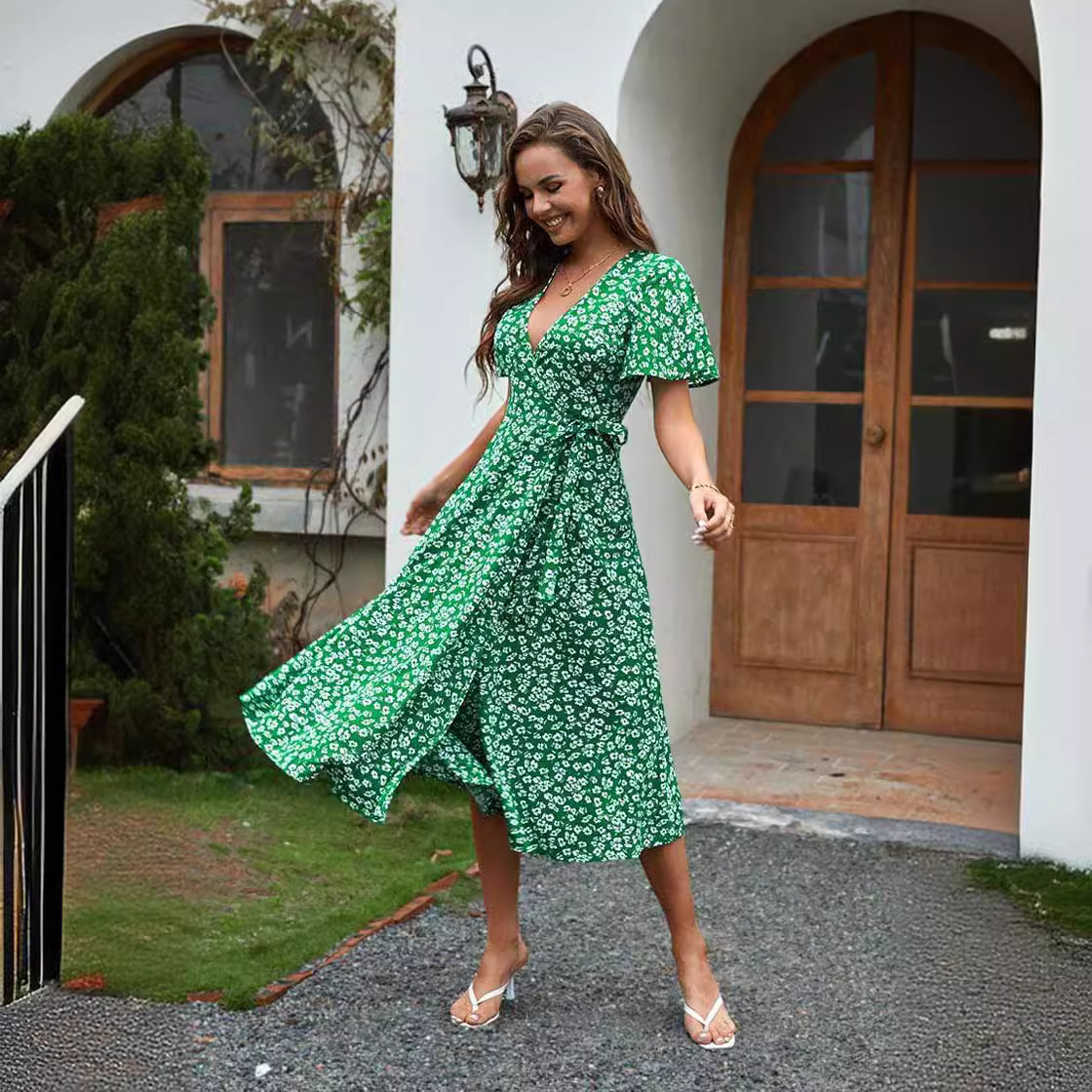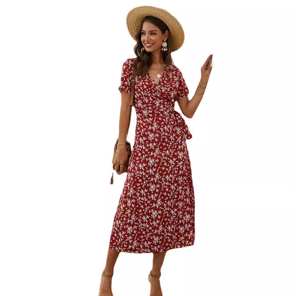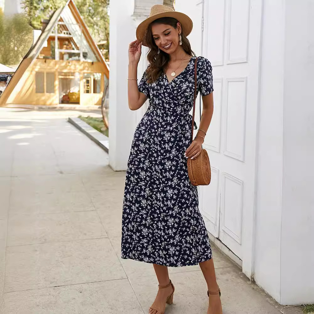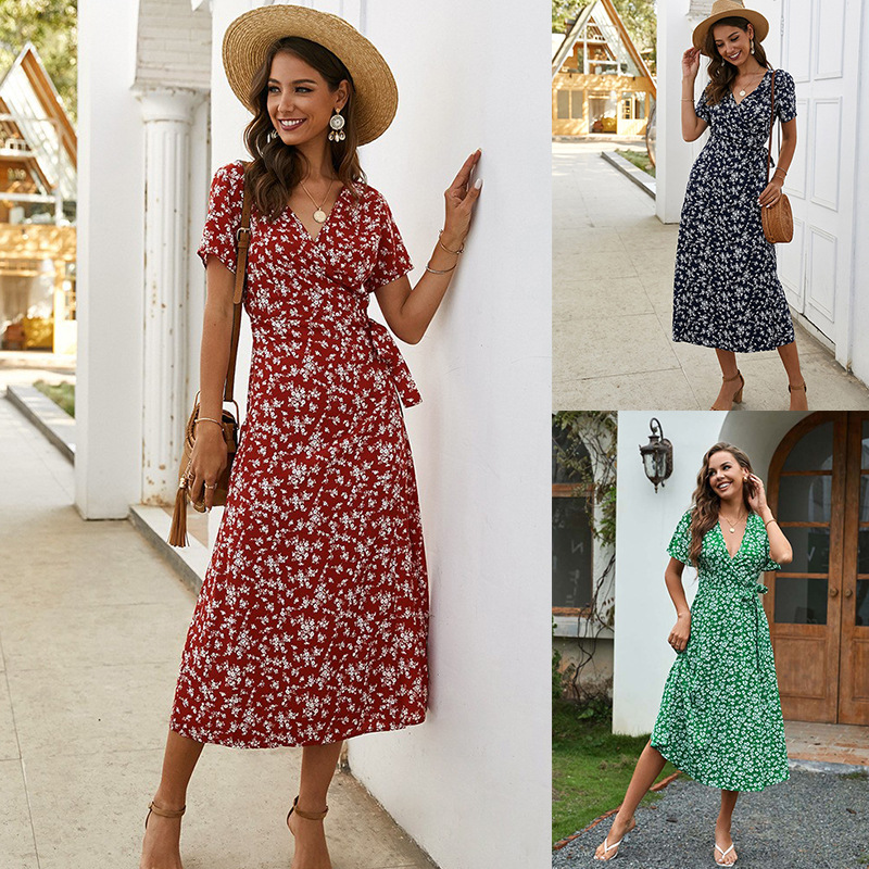 | nameOriginal | Cross-border foreign trade AliExpress Amazon 2023 Summer new long skirt ruffled printed V-neck short sleeve dress |
