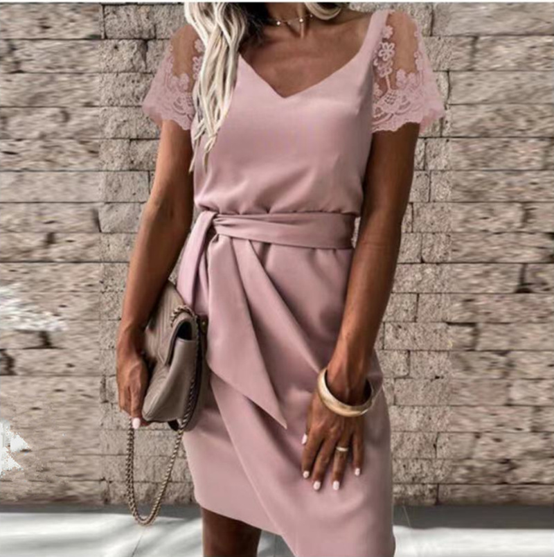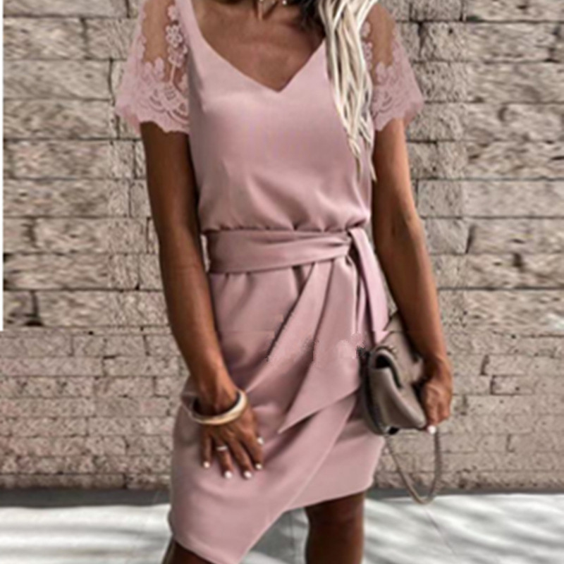 | nameOriginal | Cross-border foreign trade AliExpress Europe and the United States 2023 spring new V-neck Party solid color lace short sleeve tight dress |