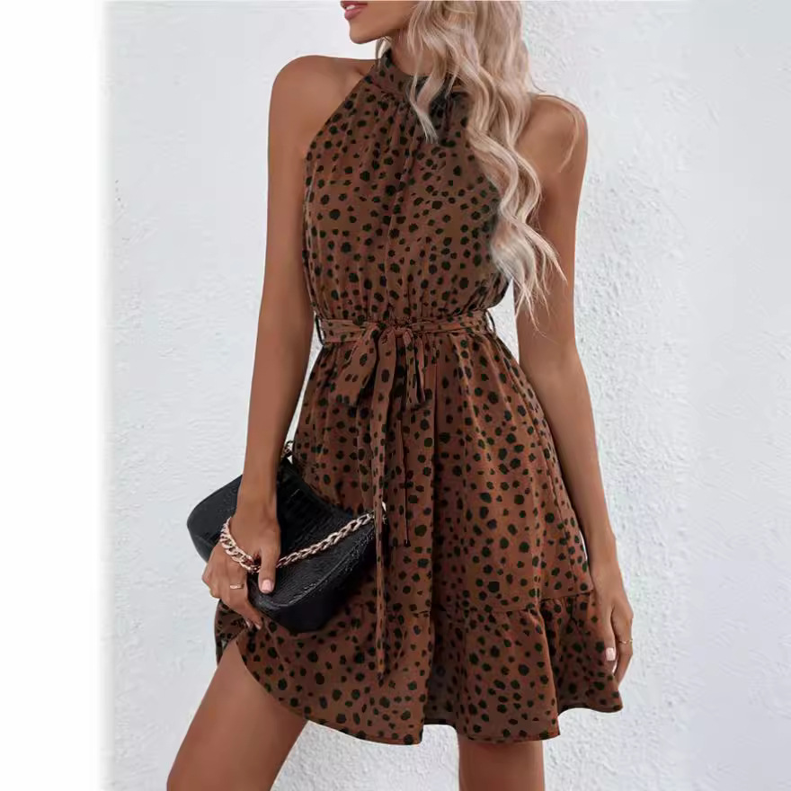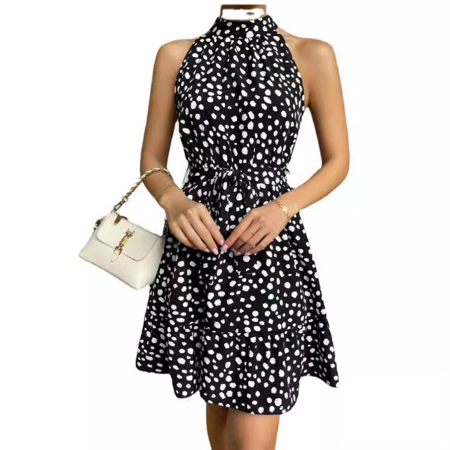 | nameOriginal | Cross-border Foreign Trade Amazon 2023 European and American Summer Sleeveless Dot Printing Lace-up Waist Ruffled Dress for Women |
