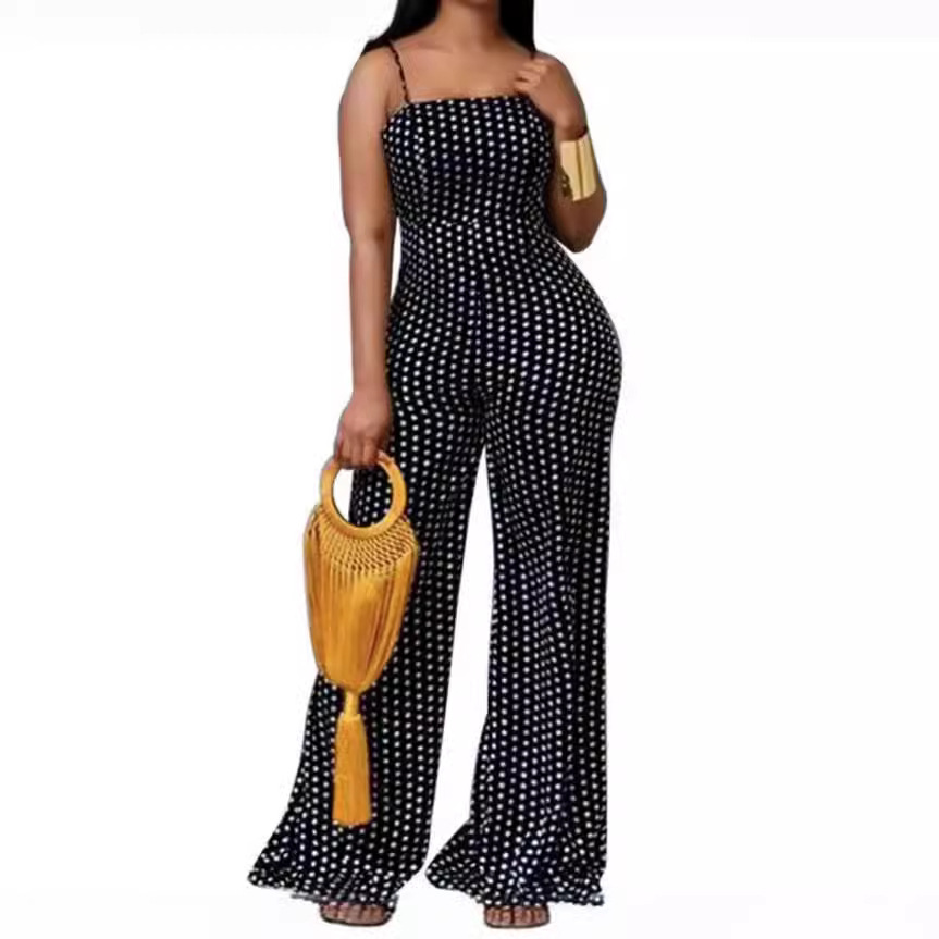 | nameOriginal | Cross-border Foreign Trade Amazon European and American Fashion Sexy Women's Summer Sleeveless Dot Wide Leg Casual Printed Suspender Pants |