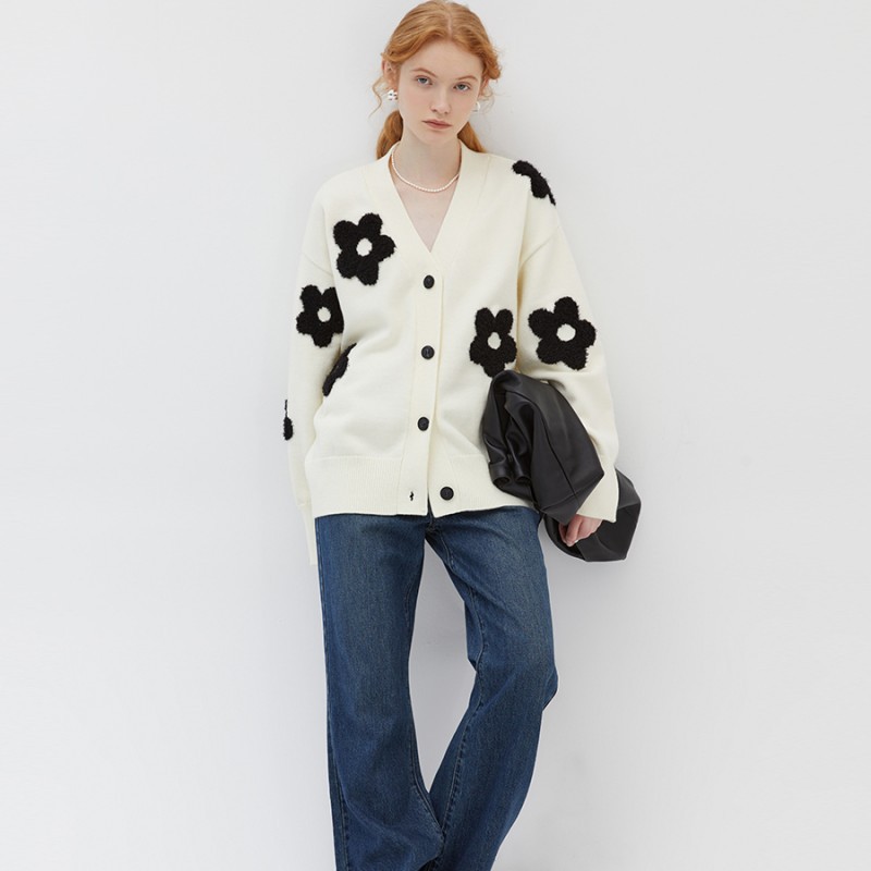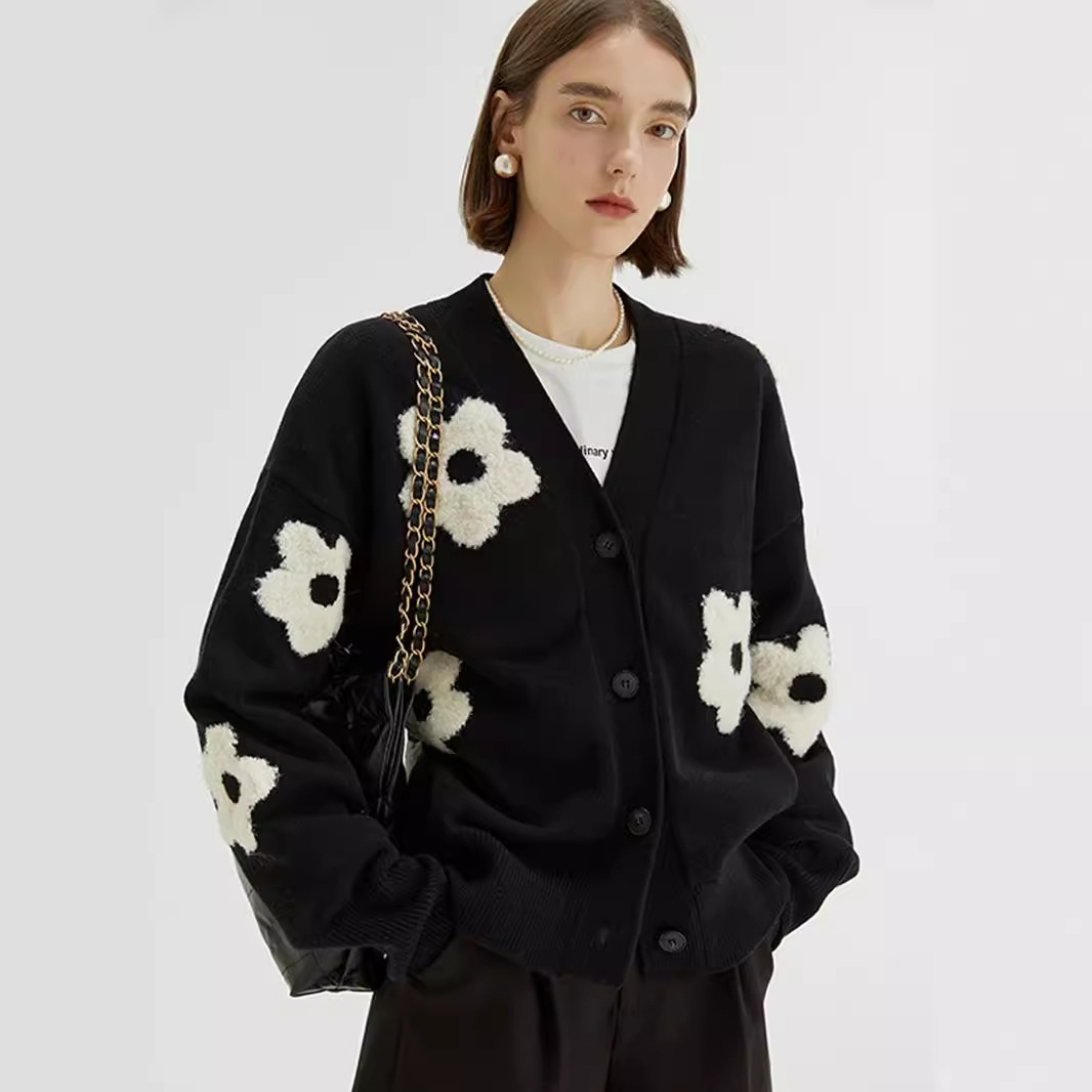| nameOriginal | Cross-border foreign trade autumn new V-neck three-dimensional intarsia lazy slim flower sweater cardigan sweater coat women |