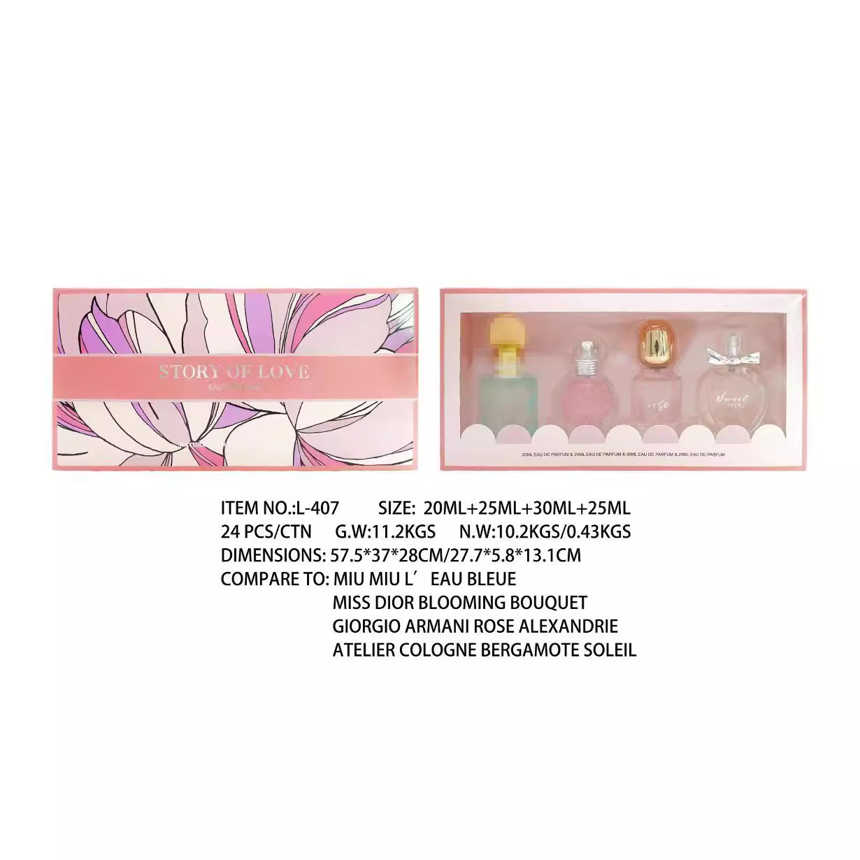 Cross-border foreign trade box perfume men’s and women’s three-piece four-piece set full English foreign trade version perfumes wholesale