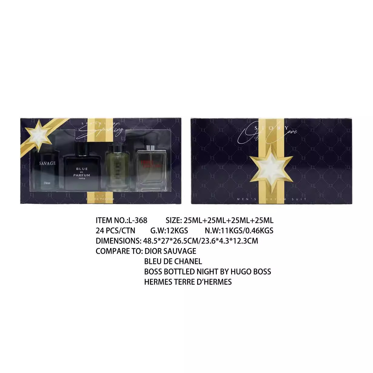Cross-border foreign trade box gift box perfume men's and women's three-piece set four-piece set full English foreign trade version perfume