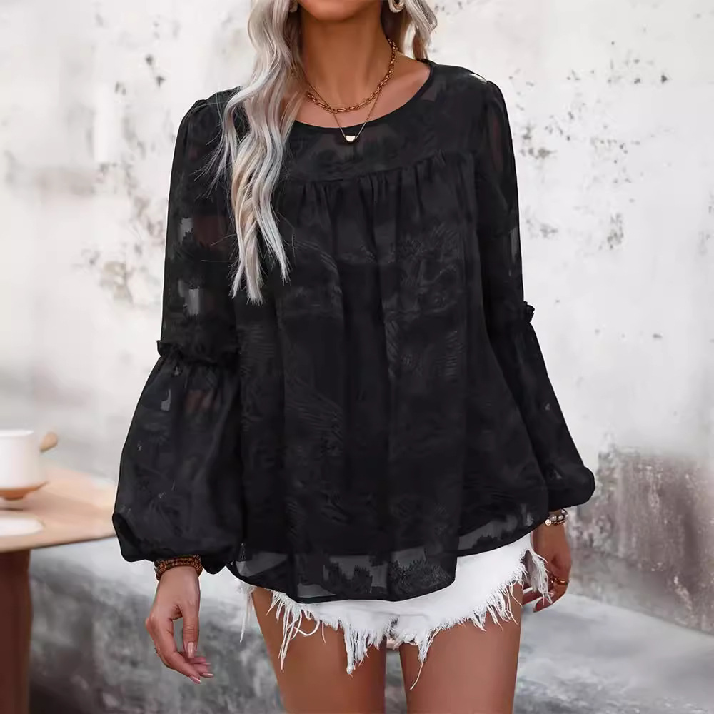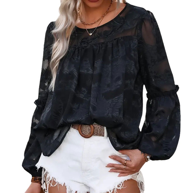 | nameOriginal | Cross-border Foreign Trade Cut Flower Design Lantern Sleeve Long-sleeved Round Neck Loose Top Women's Ins Mesh Perspective T-shirt Women's Spring and Summer |