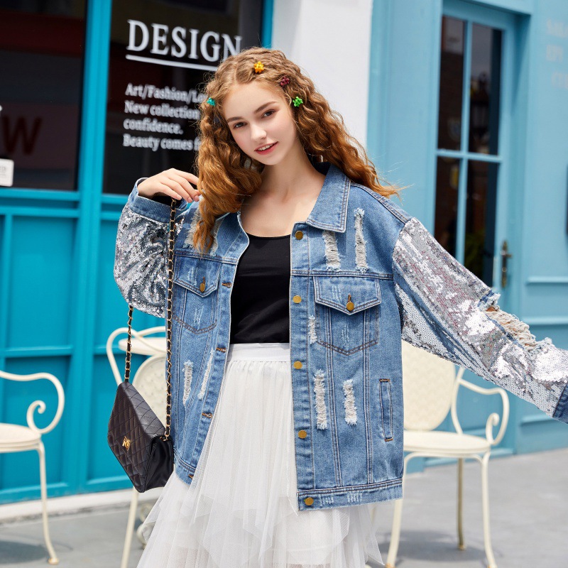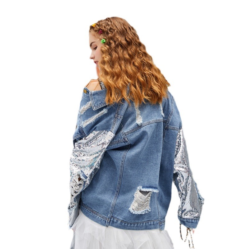 | nameOriginal | Cross-border Foreign Trade Early Autumn European Station Spring Heavy Industry Sequin Denim Coat Women's Loose Fashionable Distinctive Rack Clothes |
