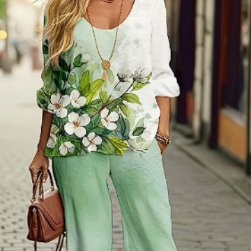 | nameOriginal | Cross-border foreign trade Europe and the United States long sleeve suit Amazon autumn new round neck linen printed coat shirt suit |
