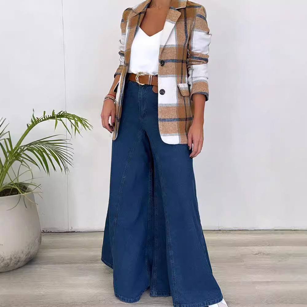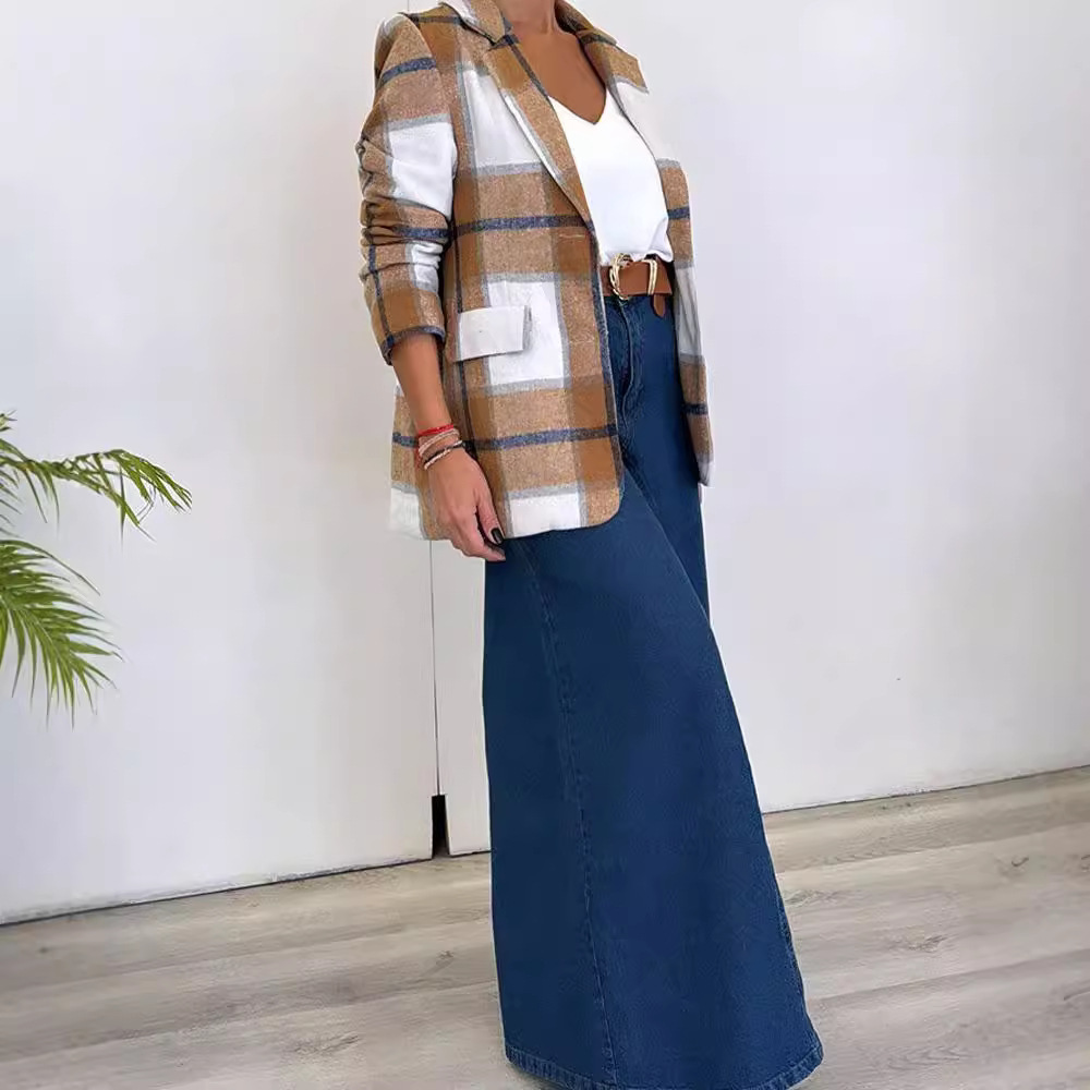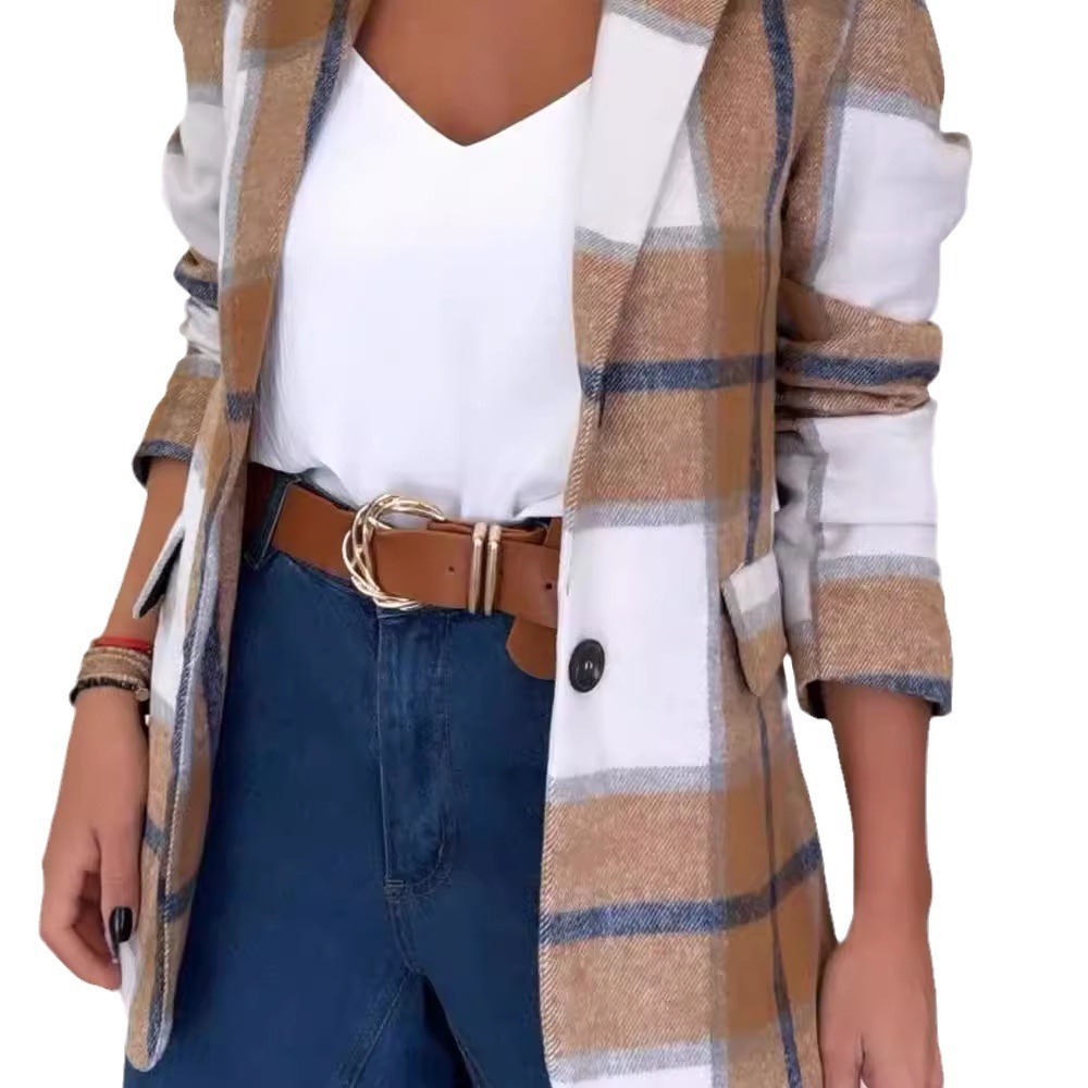 | nameOriginal | Cross-border Foreign Trade European and American Women's 2024 Autumn and Winter Fashion Simple Casual Suit Collar Single-breasted Plaid Woolen Jacket |