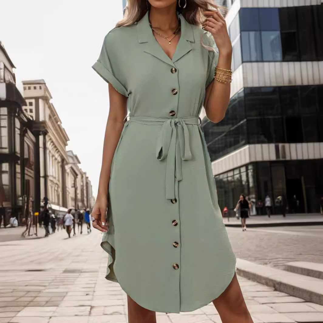 | nameOriginal | Cross-border Foreign Trade European and American Women's 2024 Summer AliExpress Amazon Single-breasted Lace-up Waist Short-sleeved Dress |