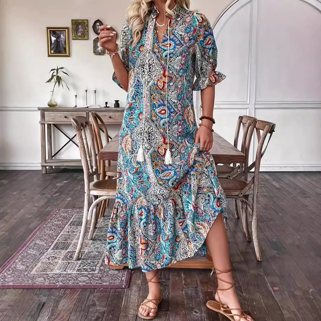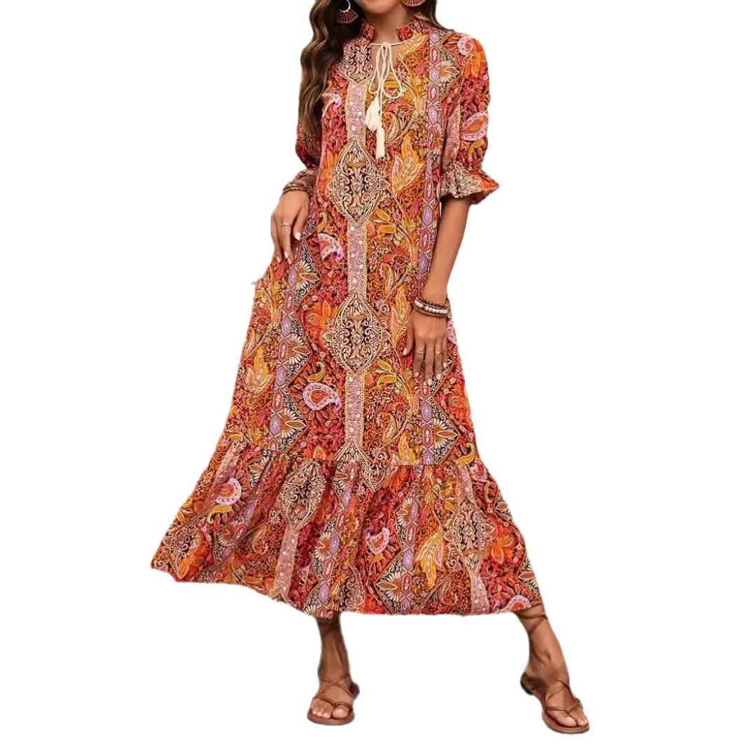 | nameOriginal | Cross-border foreign trade European and American women's clothing 2024 Amazon AliExpress autumn sleeve printing lace ruffled dress |