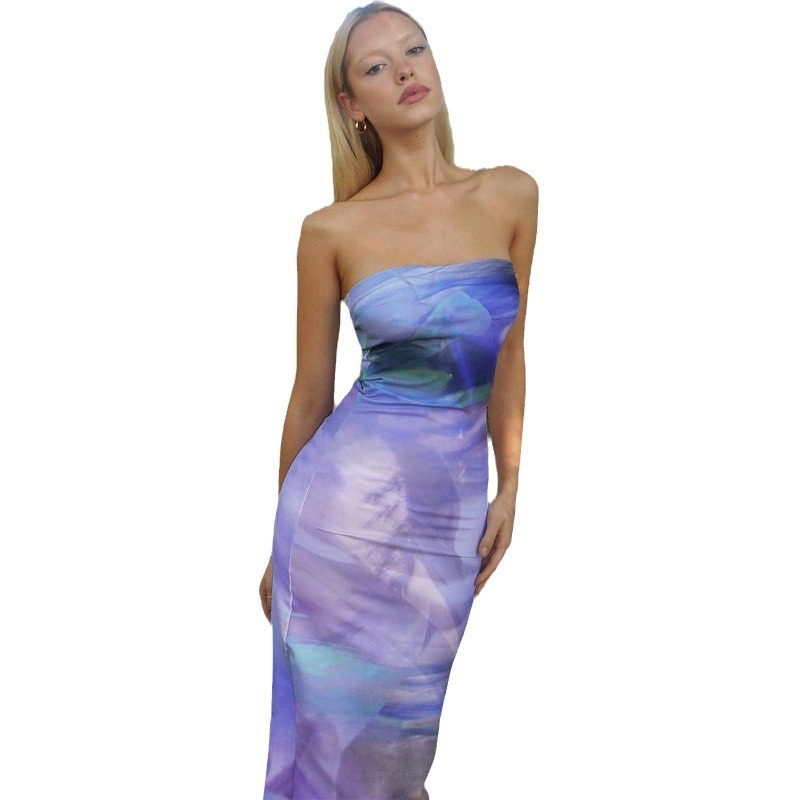 | nameOriginal | Cross-border foreign trade European and American women's clothing 2024 Summer Amazon Fashion printing slim slimming backless tube top dress |