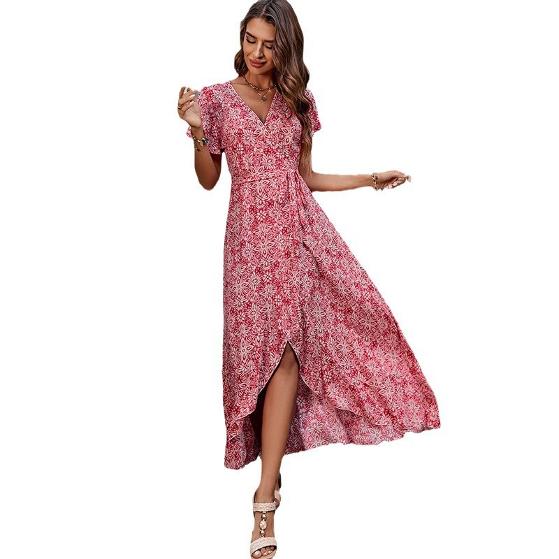 | nameOriginal | Cross-border foreign trade European and American women's clothing 2024 Summer V-neck printed one-piece strap beach vacation swing dress |