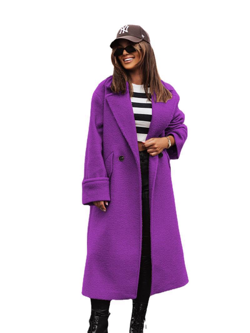 | nameOriginal | Cross-border foreign trade European and American women's clothing Amazon 2023 autumn and winter solid color casual suit collar long woolen coat overcoat |