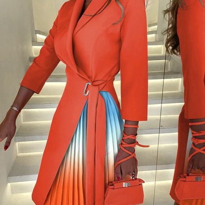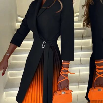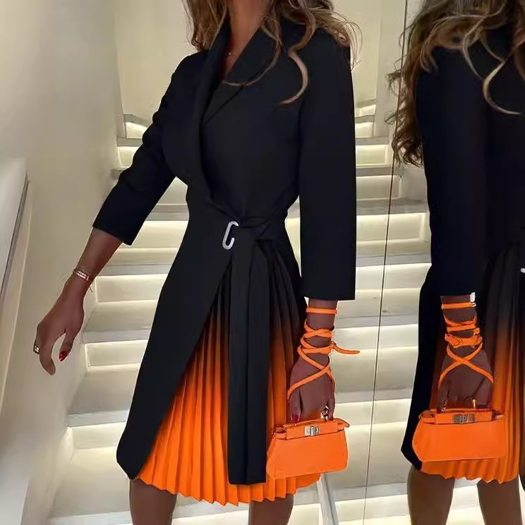 | nameOriginal | Cross-border foreign trade European and American women's clothing Amazon 2023 autumn and winter V-neck fashion lace-up waist mid-sleeve pleated dress |