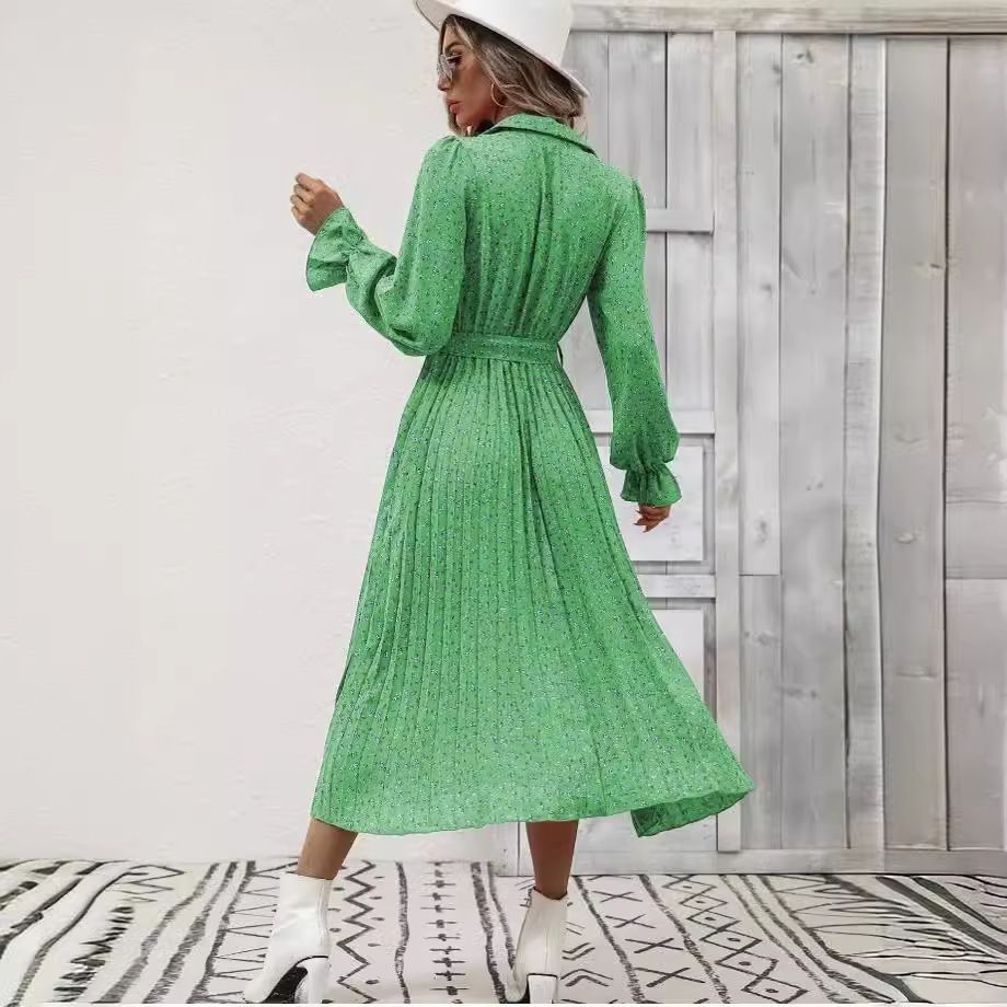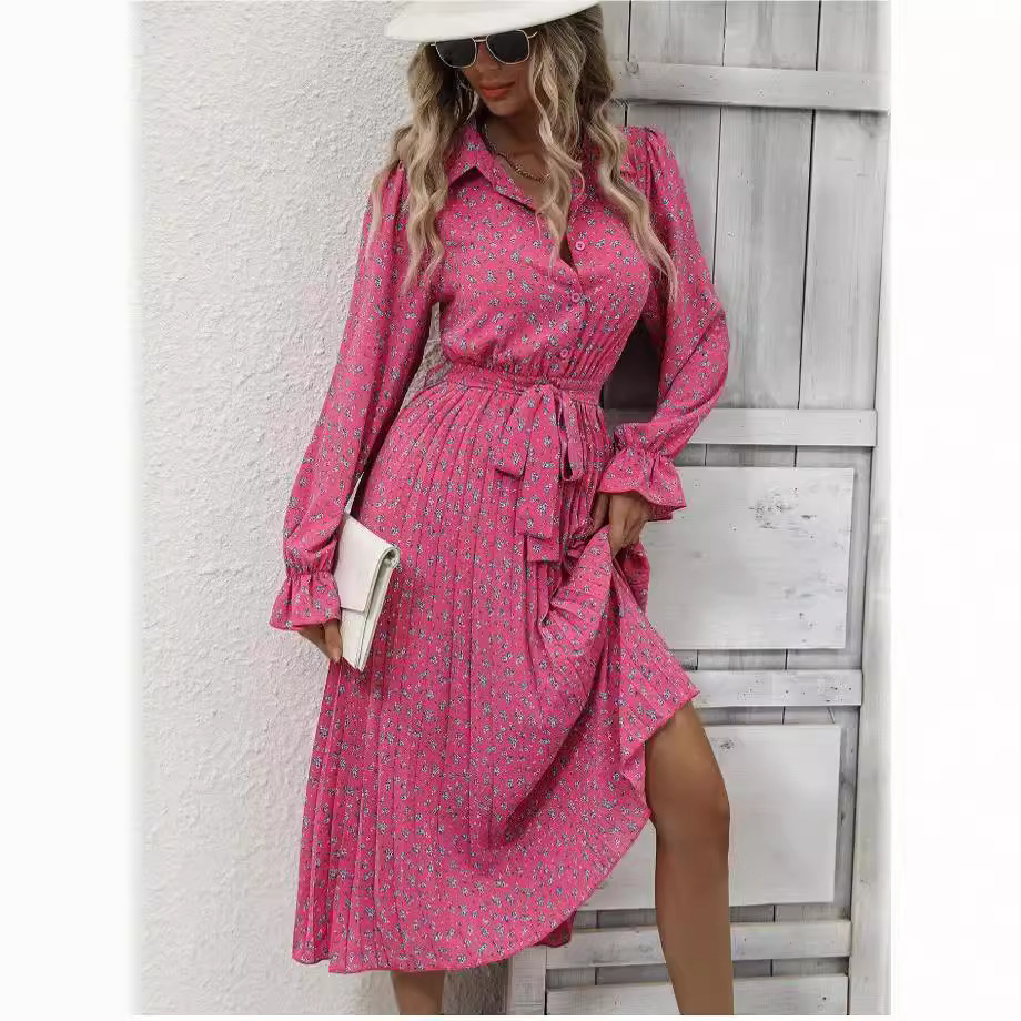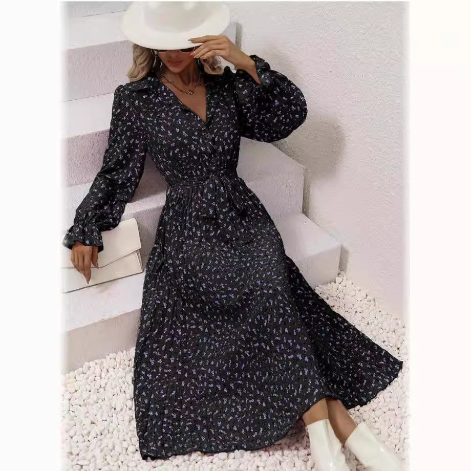 | nameOriginal | Cross-border foreign trade European and American women's clothing Amazon 2023 autumn fashion folding lace-up waist long sleeve dress |