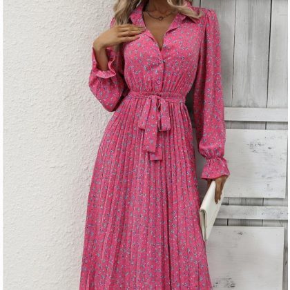 | nameOriginal | Cross-border foreign trade European and American women's clothing Amazon 2023 autumn fashion folding lace-up waist long sleeve dress |
