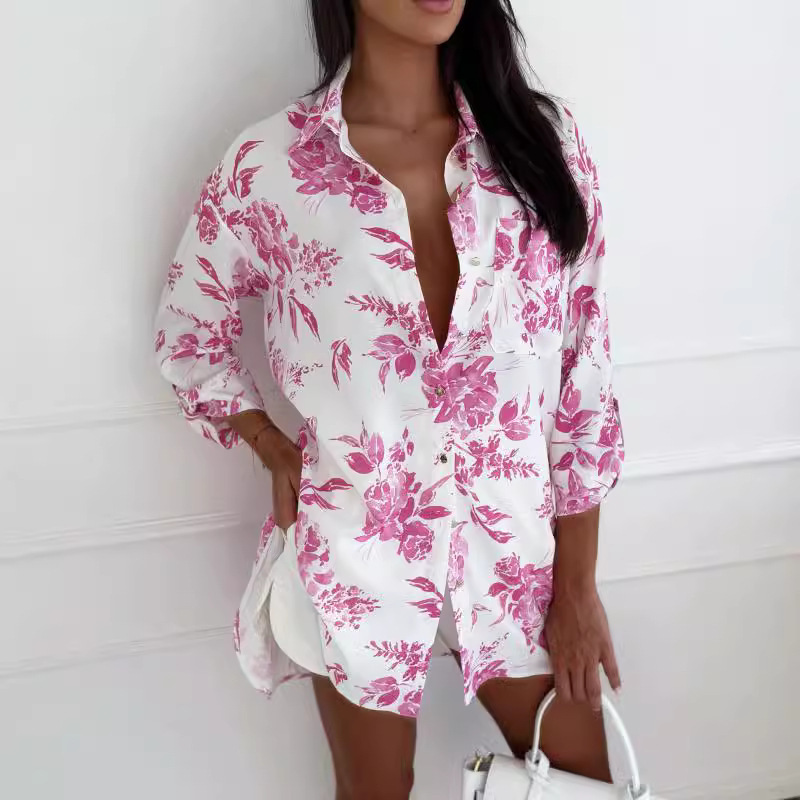 Cross-border foreign trade European and American women's clothing Amazon 2024 solid color sleeve long shirt single-breasted shirt dress