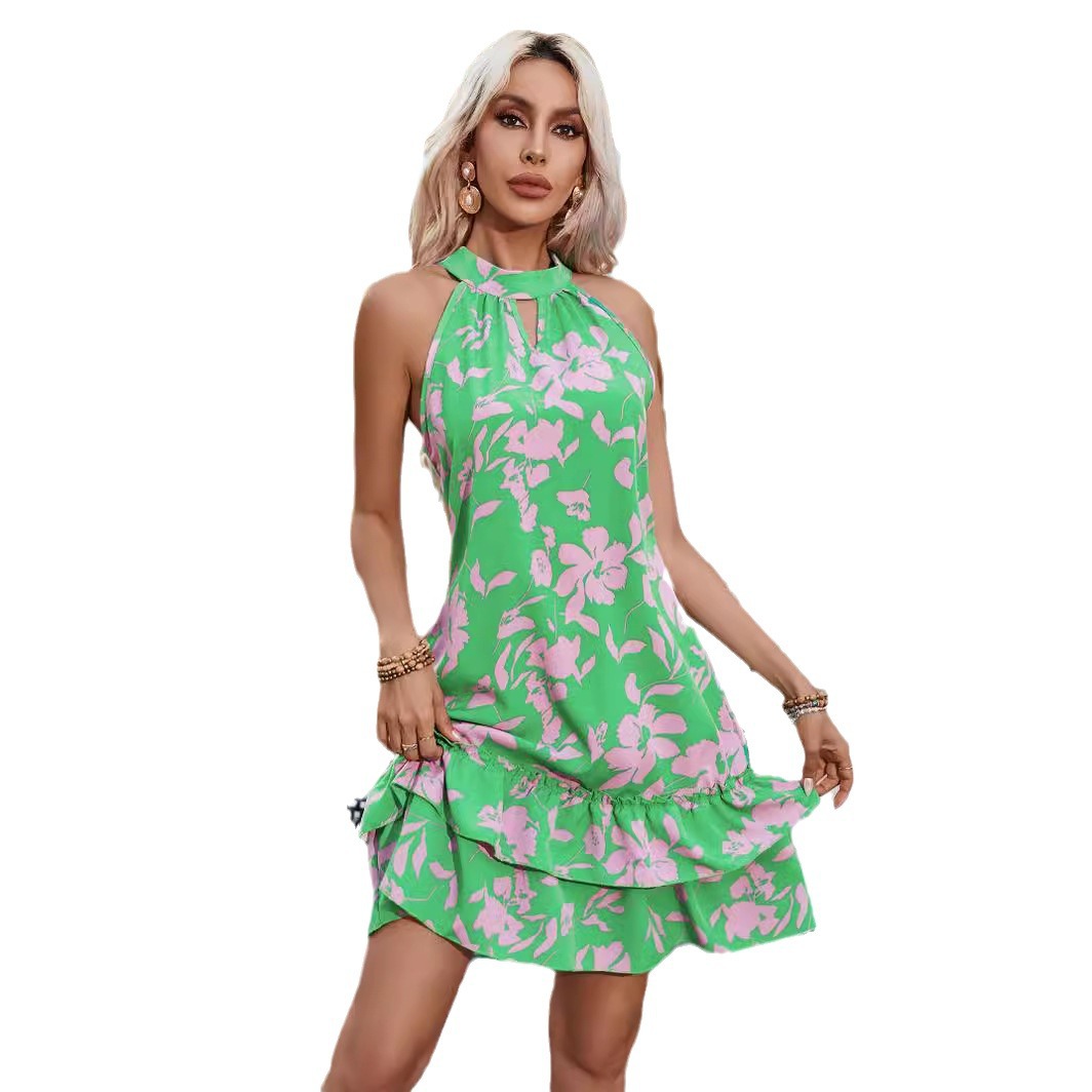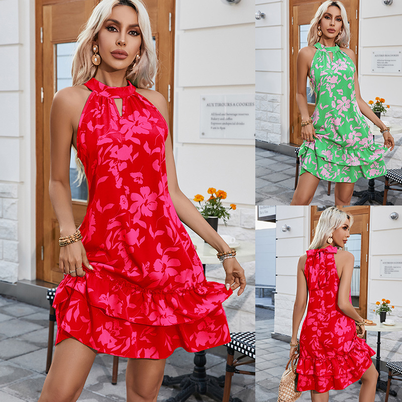 | nameOriginal | Cross-border foreign trade European and American women's clothing Amazon 2024 spring and summer sleeveless sexy halter ruffled Printing Dress |