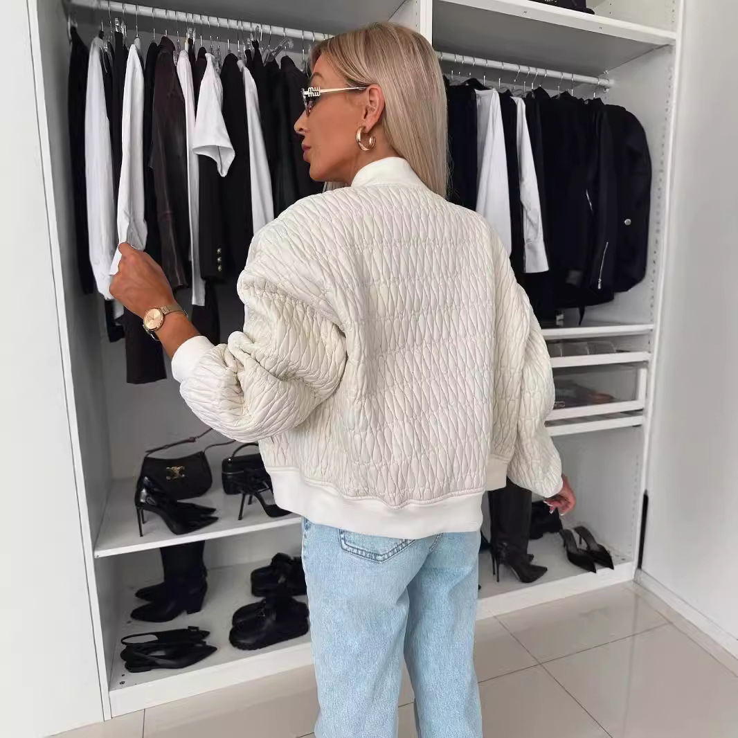 Cross-border foreign trade European and American women's clothing Amazon AliExpress 2024 autumn and winter solid color embroidered short zipper jacket cotton-padded jacket