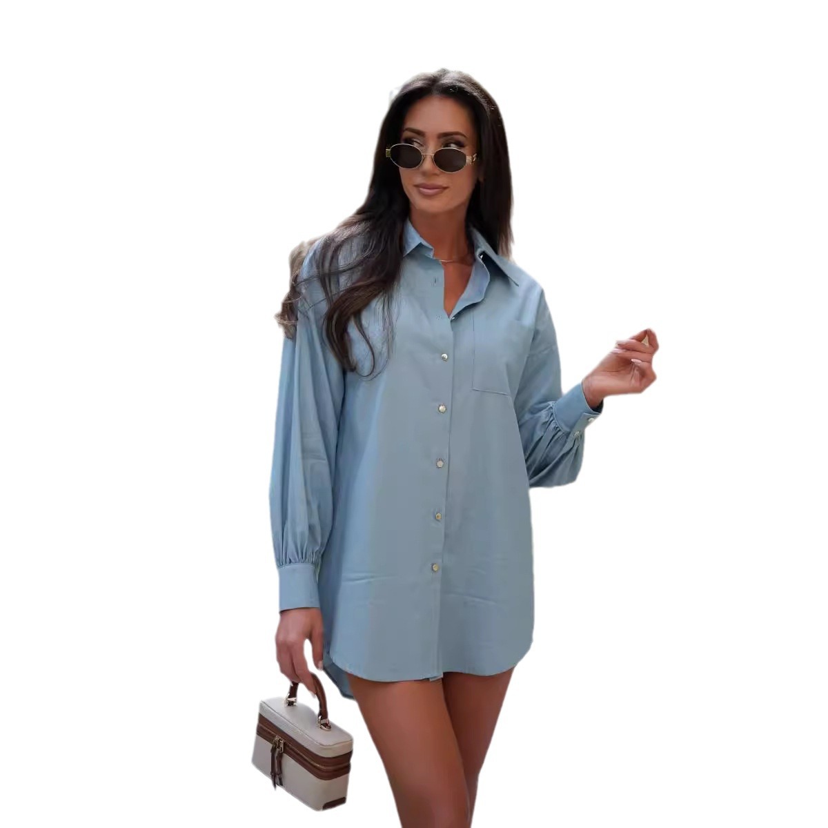 Cross-border foreign trade European and American women's clothing Amazon AliExpress 2024 autumn and winter solid color washing water Denim long sleeve simple shirt