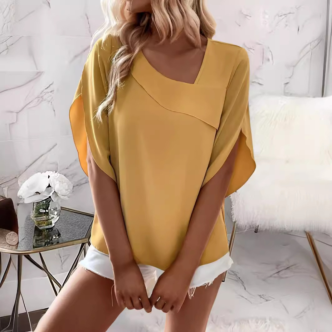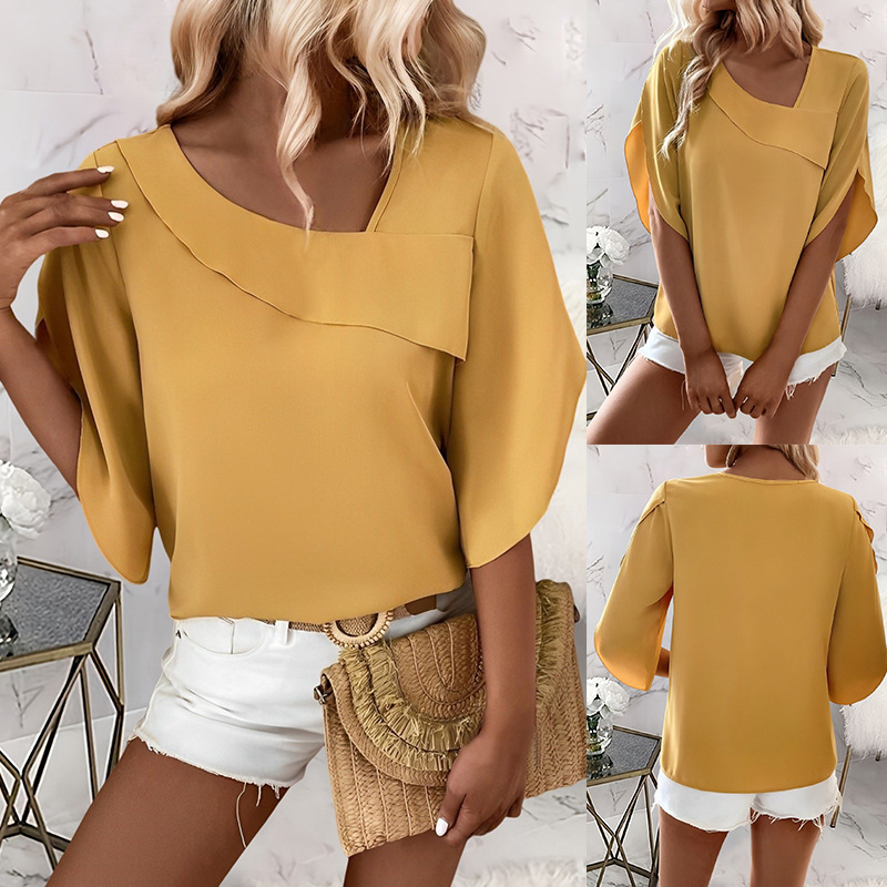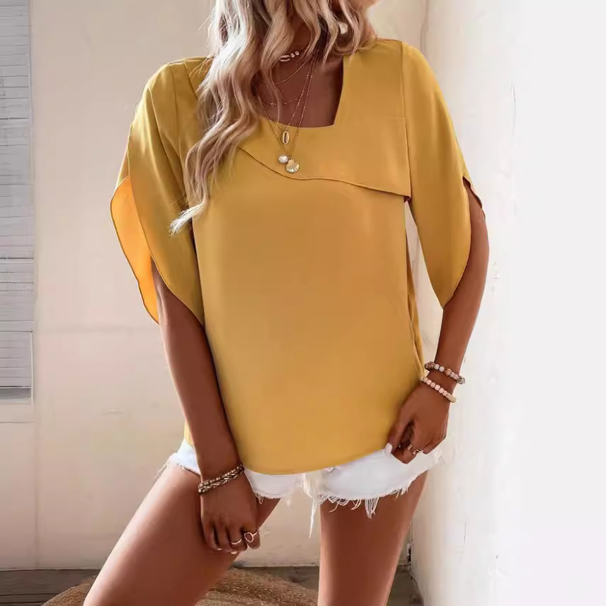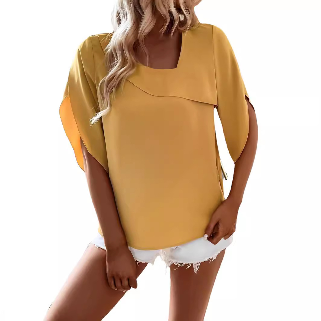 | nameOriginal | Cross-border foreign trade European and American women's clothing Amazon AliExpress 2024 Summer solid color slim fashion square collar half sleeve top |
