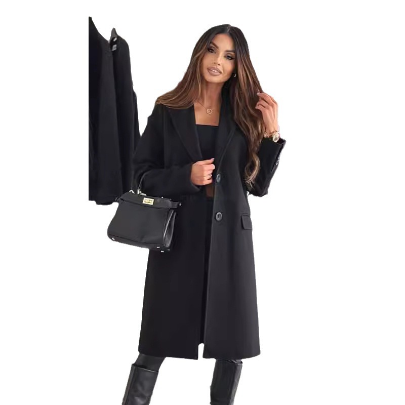 | nameOriginal | Cross-border foreign trade European and American women's clothing independent station Amazon 2024 autumn and winter simple long sleeve solid color breasted wool coat |