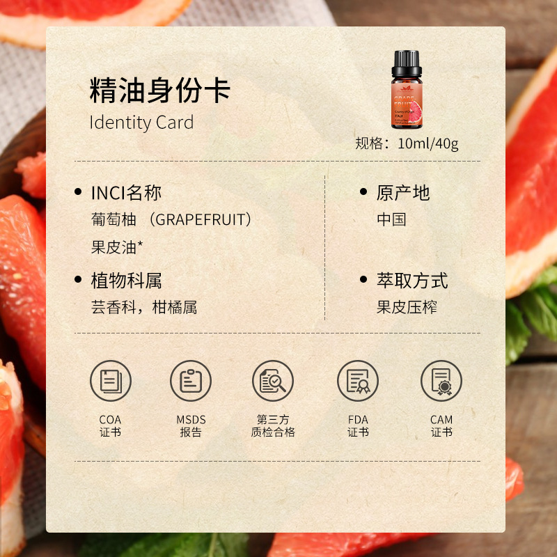 | nameOriginal | Cross-border foreign trade Grapefruit Grapefruit essential oil single massage oil plant fruit extraction 10ML sample |