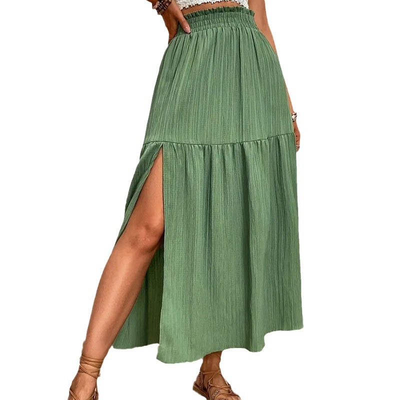 | nameOriginal | Cross-border Foreign Trade High Split Ruffle Waist Skirt Spring and Summer High-end Long Skirt Women's Skirt |