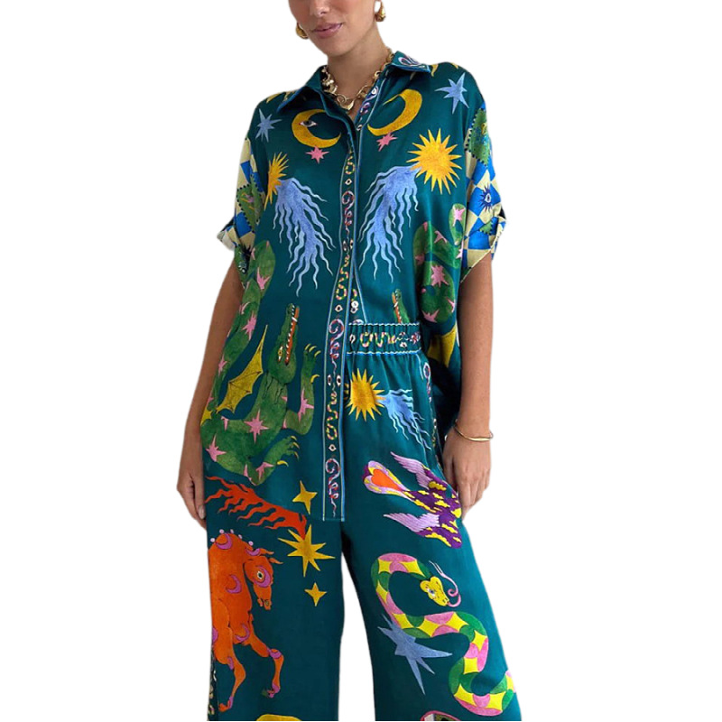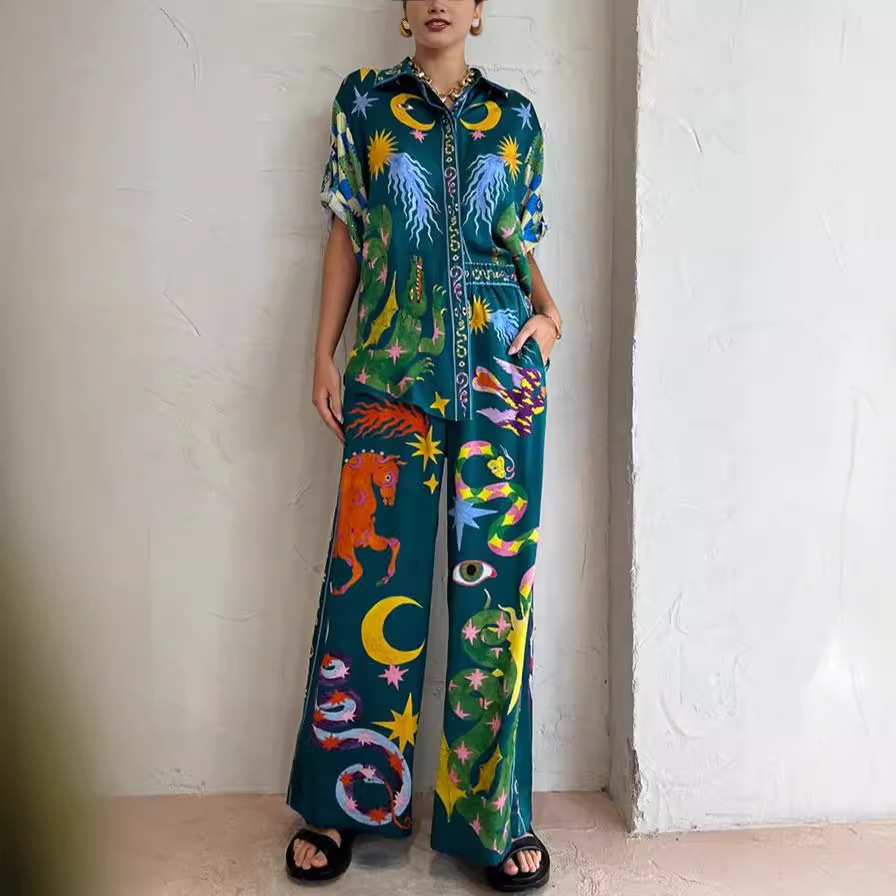 Cross-border foreign trade independent station 2023 new summer street hipster printed shirt trousers fashion two-piece suit
