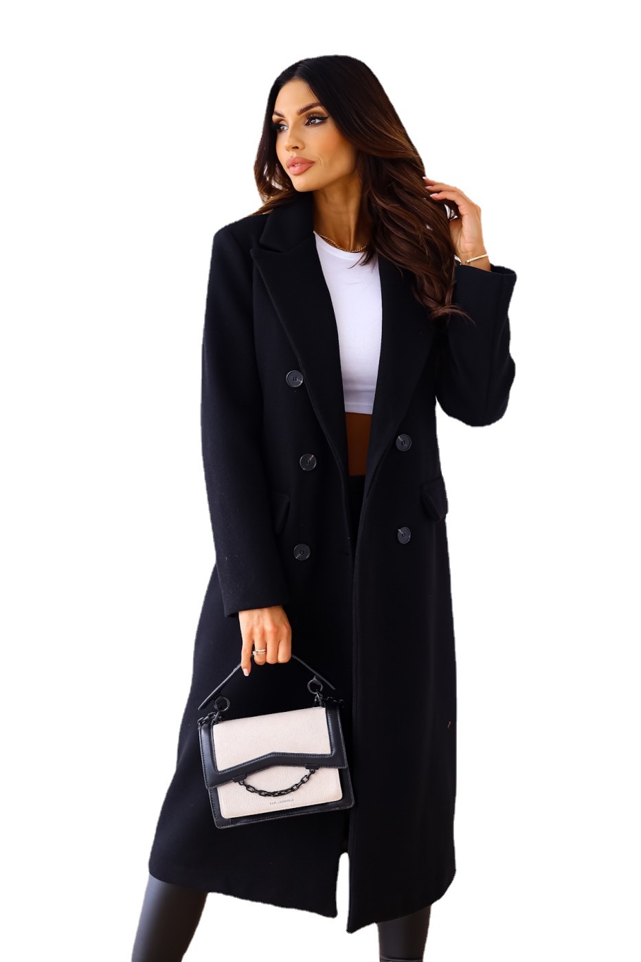 | nameOriginal | Cross-border foreign trade independent station Amazon 2023 autumn and winter simple double-breasted long sleeve lapel button woolen coat for women |