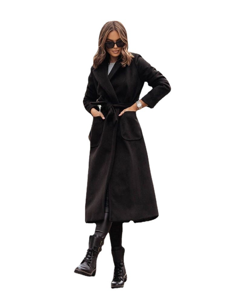 Cross-border Foreign Trade Independent Station Amazon 2023 Autumn and Winter Simple Double-breasted Long-sleeved Lapel Button Woolen Coat for Women