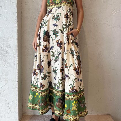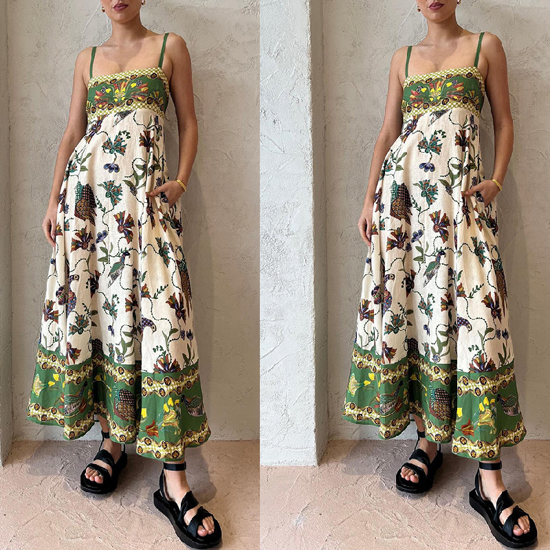 Cross-border foreign trade independent station Amazon 2023 new summer strap printed sleeveless large swing sexy dress women
