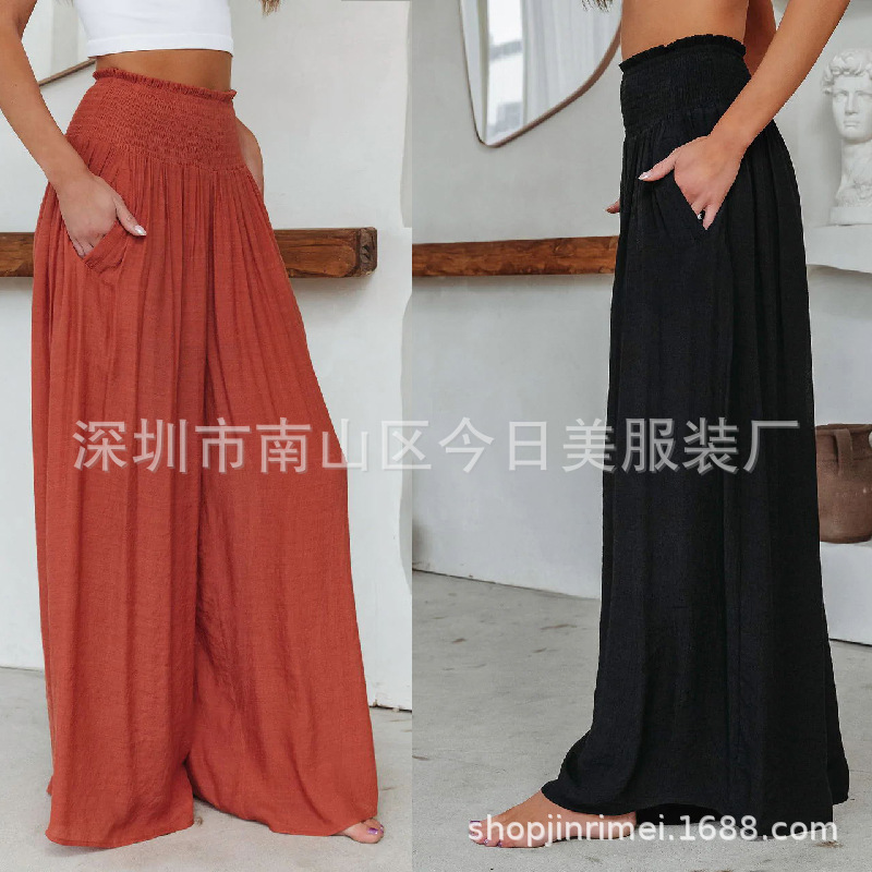 | nameOriginal | Cross-border foreign trade independent station New 2023 spring and summer cotton wide leg pants loose elastic pocket casual pants pants |