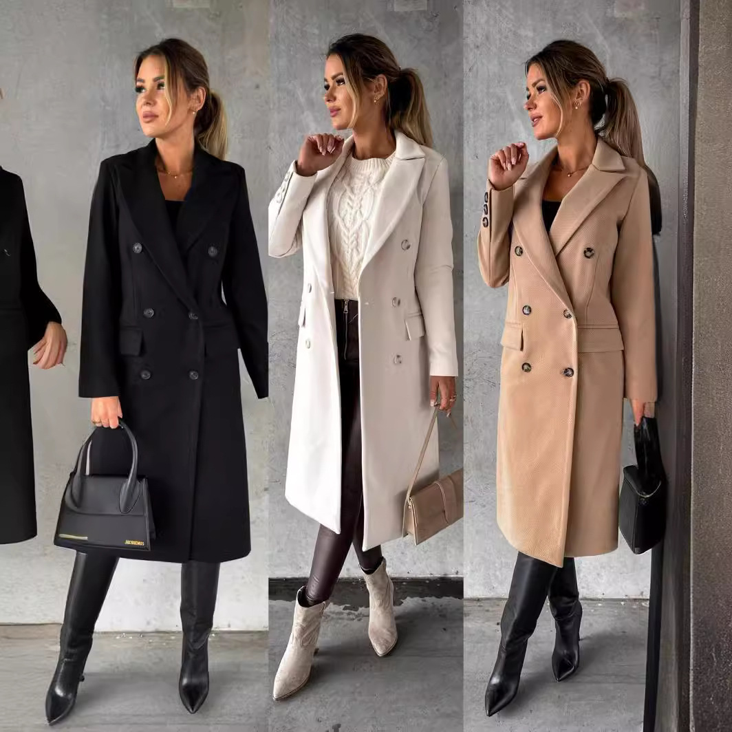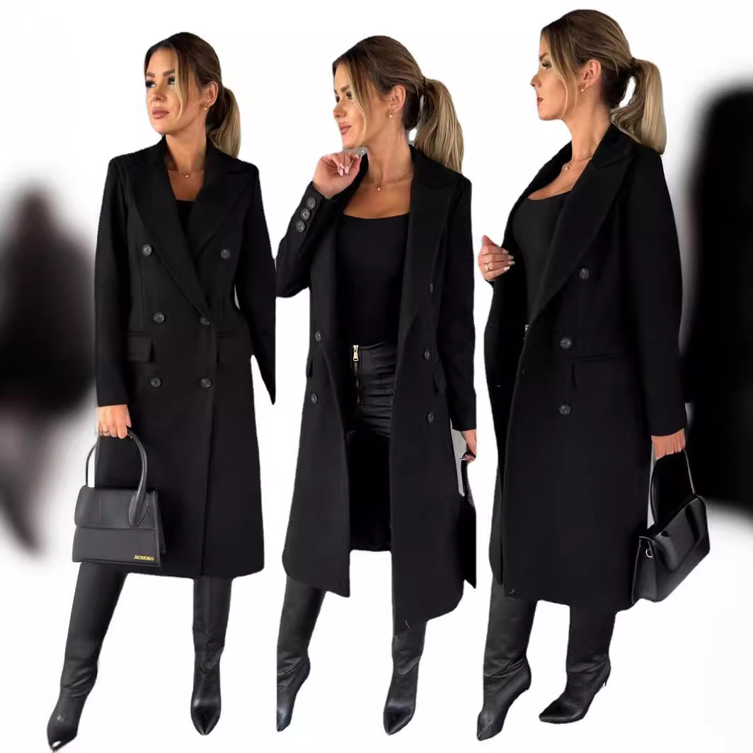 | nameOriginal | Cross-border foreign trade independent station wish Amazon 2023 autumn and winter simple long sleeve double-breasted casual woolen coat for women |