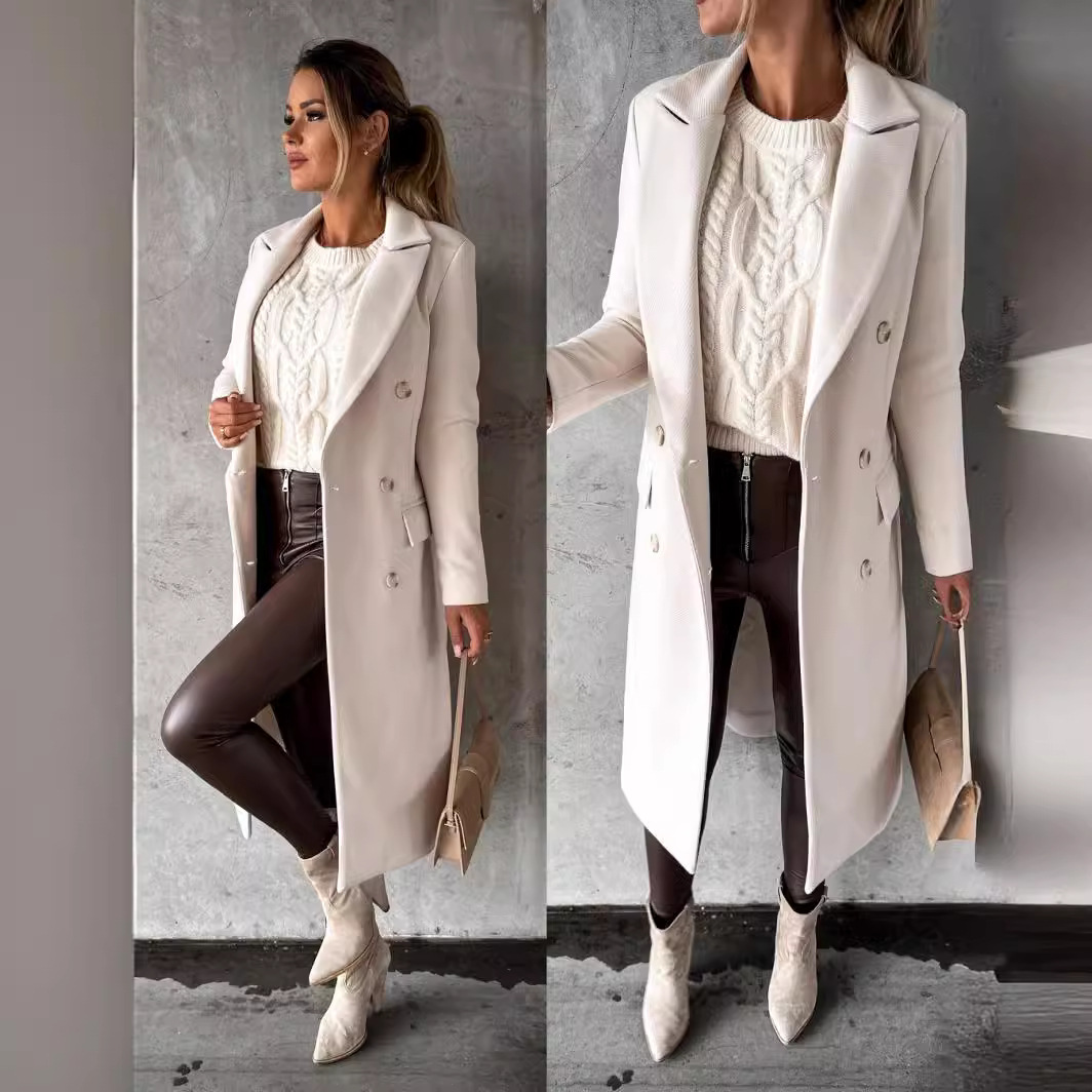 | nameOriginal | Cross-border foreign trade independent station wish Amazon 2023 autumn and winter simple long sleeve double-breasted casual woolen coat for women |