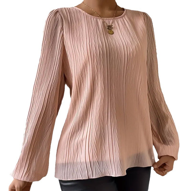 | nameOriginal | Cross-border foreign trade ins chiffon pleated top women's pleated lantern sleeve round neck long sleeve t-shirt women's summer a generation of hair |