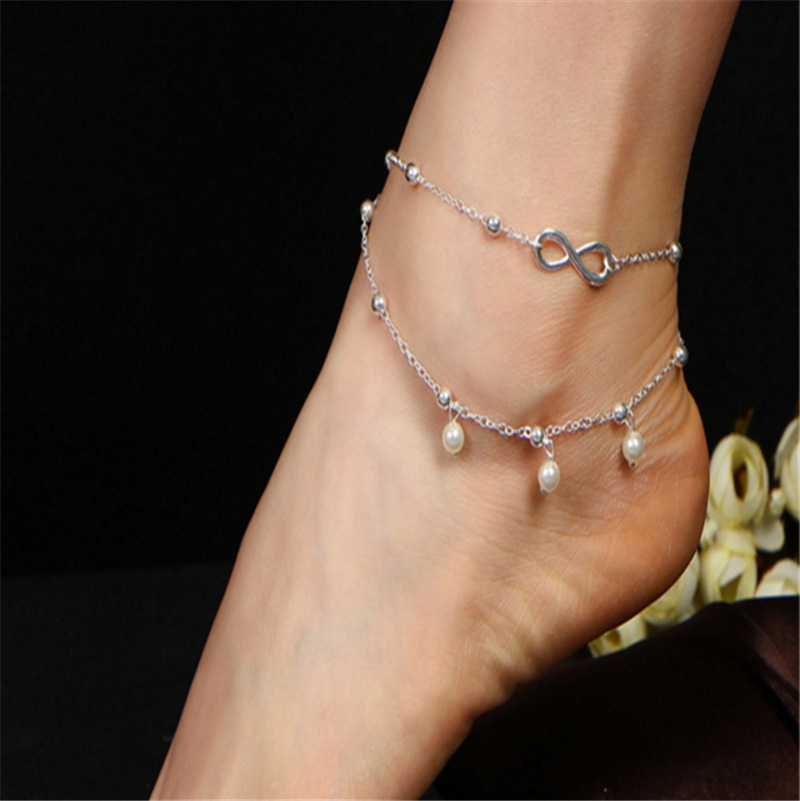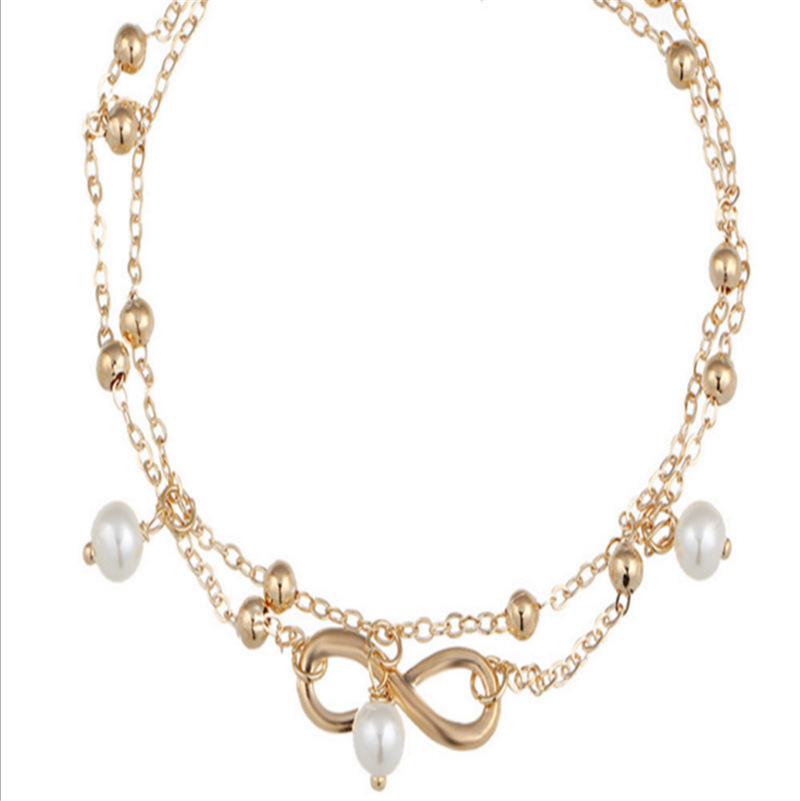 | nameOriginal | Cross-border foreign trade jewelry double-layer women's anklet simple imitation pearl round bead pendant alloy 8-word anklet wholesale |