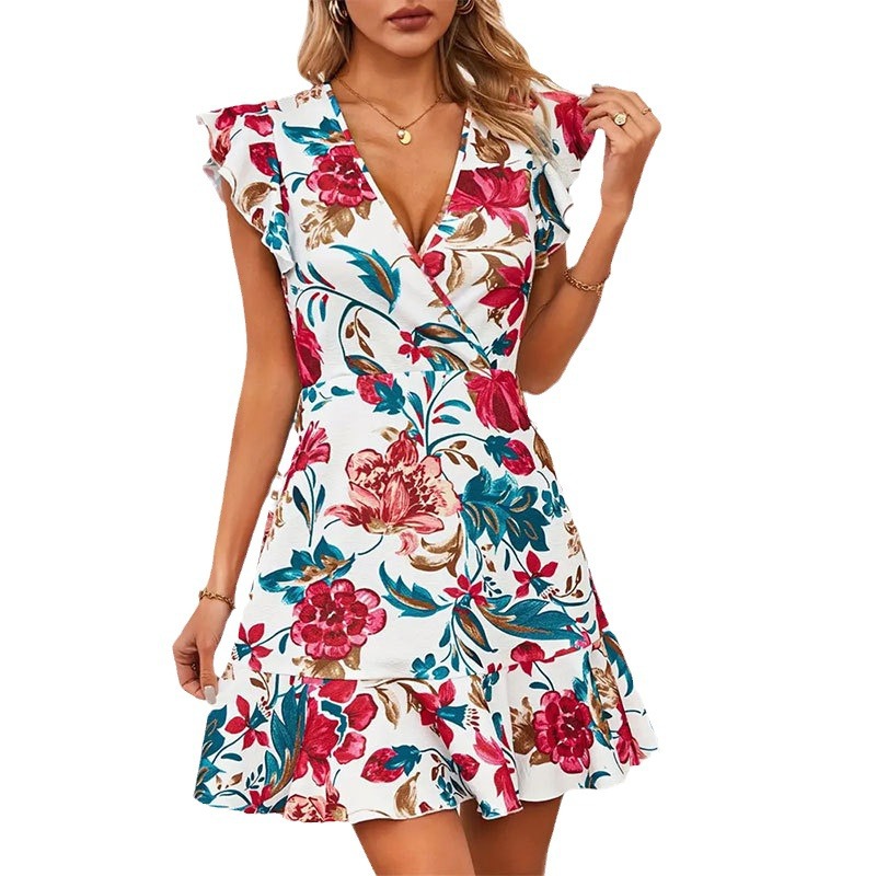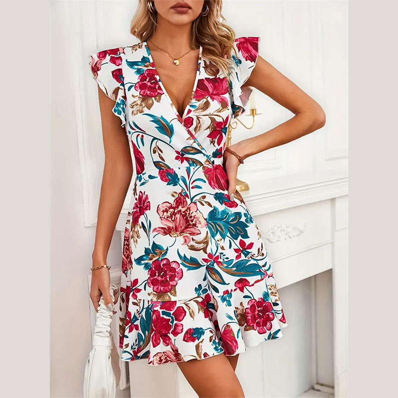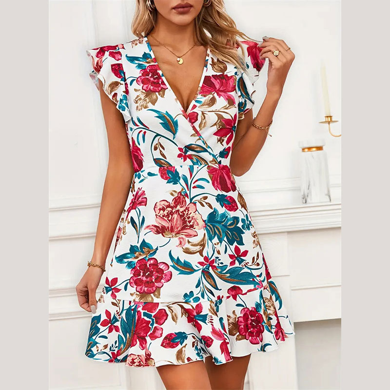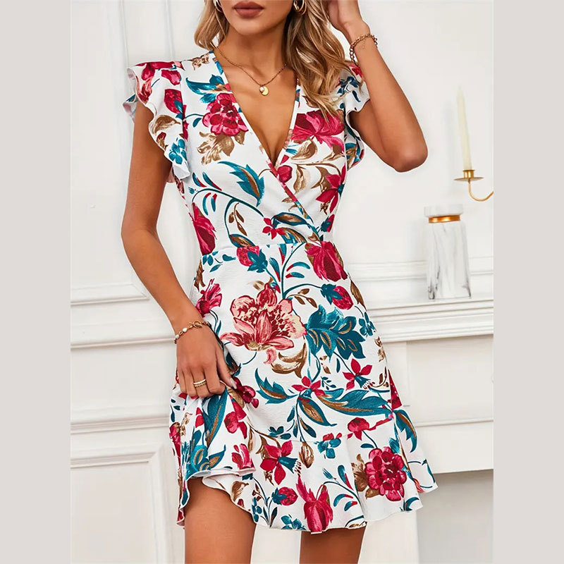 | nameOriginal | Cross-border Foreign Trade Knitted Printed Stretch Tight Cross Collar Lotus Leaf Flying Sleeve Dress Women's Spring and Autumn High-end Sense |