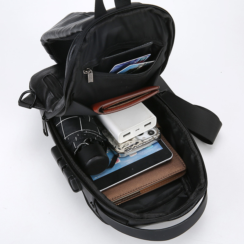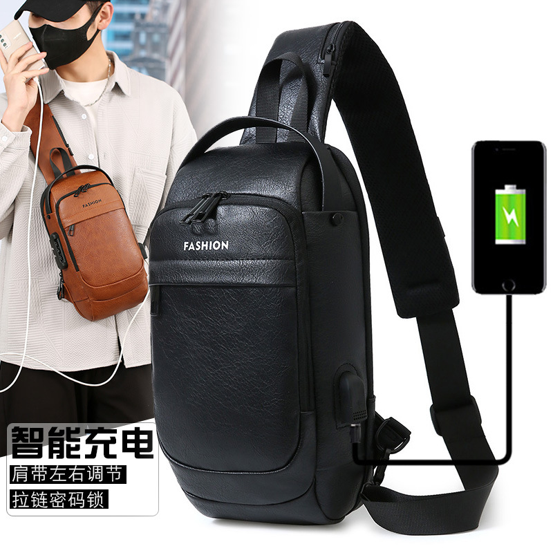 | nameOriginal | Cross-border foreign trade men's chest bag diagonal bag leisure sports multi-function USB anti-theft pu leather multi-function password lock |