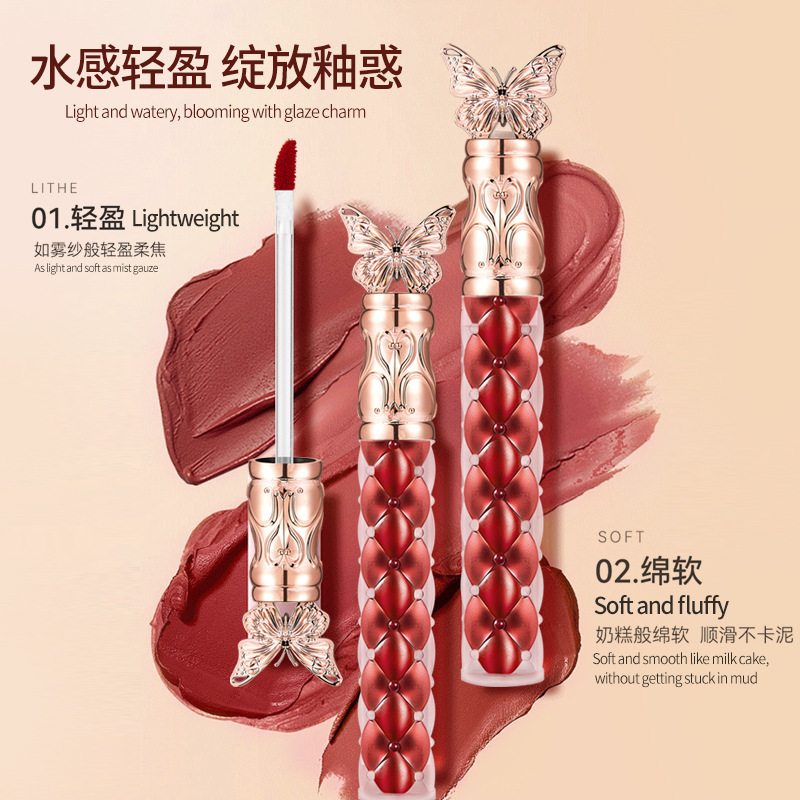 | nameOriginal | Cross-border foreign trade OCHEAL honey lip glaze butterfly lipstick not easy to touch cup velvet lip gloss waterproof matte lip mud |