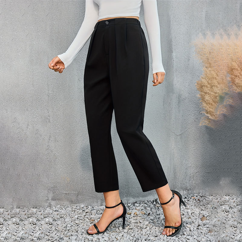 | nameOriginal | Cross-border Foreign Trade Pleated High Waist Solid Color Casual Pants Cropped Pants Temperament Commuter Slim-fit Pants Women's Summer Pants |
