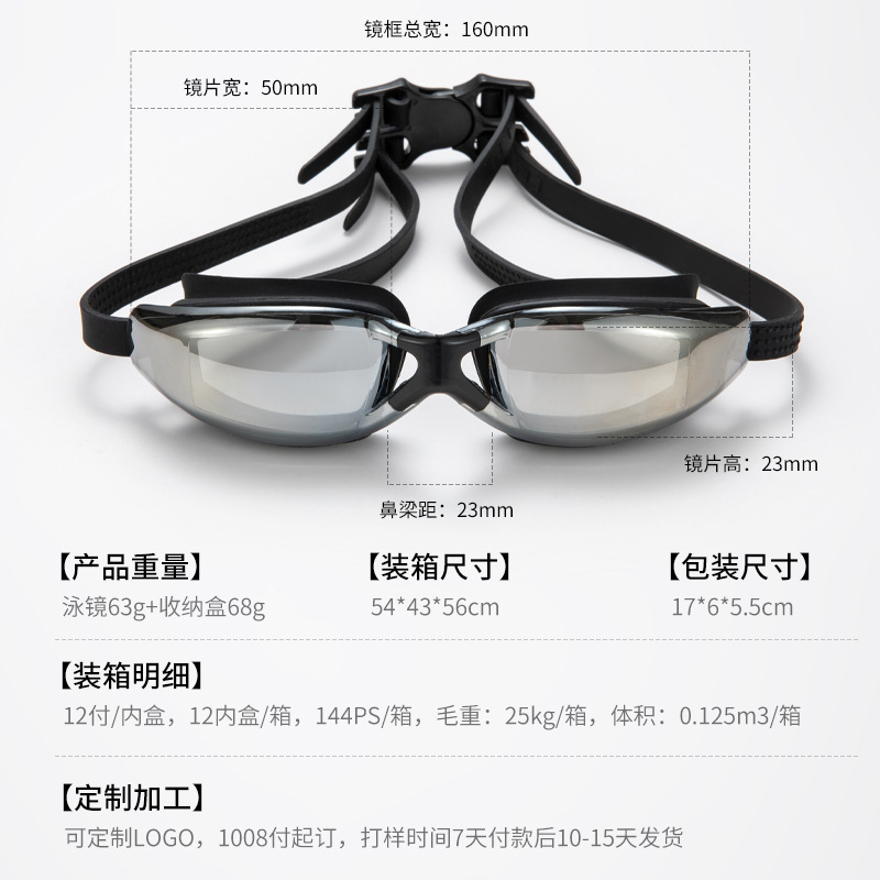 | nameOriginal | Cross-border foreign trade popular swimming goggles large frame electroplating myopia swimming glasses plain waterproof anti-fog HD adult swimming goggles |