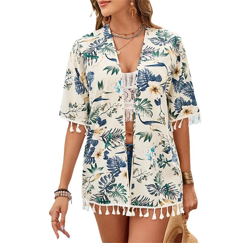 | nameOriginal | Cross-border Foreign Trade Printed Cardigan Loose Tassel Short-sleeved Shirt Women's Beach Sunscreen Top Women's Blouse Women's Clothing |