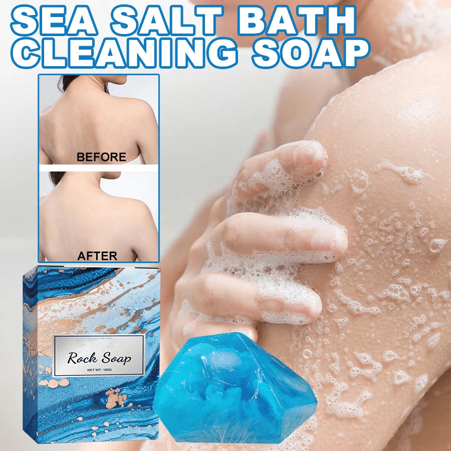 Cross-border foreign trade sea salt gem handmade essential oil soap moisturizing skin cool and comfortable exfoliating bath soap for men and women