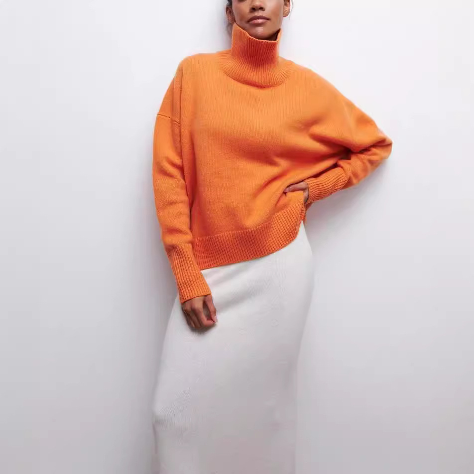 | nameOriginal | Cross-border Foreign Trade Solid Color Turtleneck Sweater European and American Autumn and Winter Loose Knitted Sweater Lapel Versatile Classic Explosion Sweater for Women |
